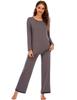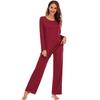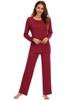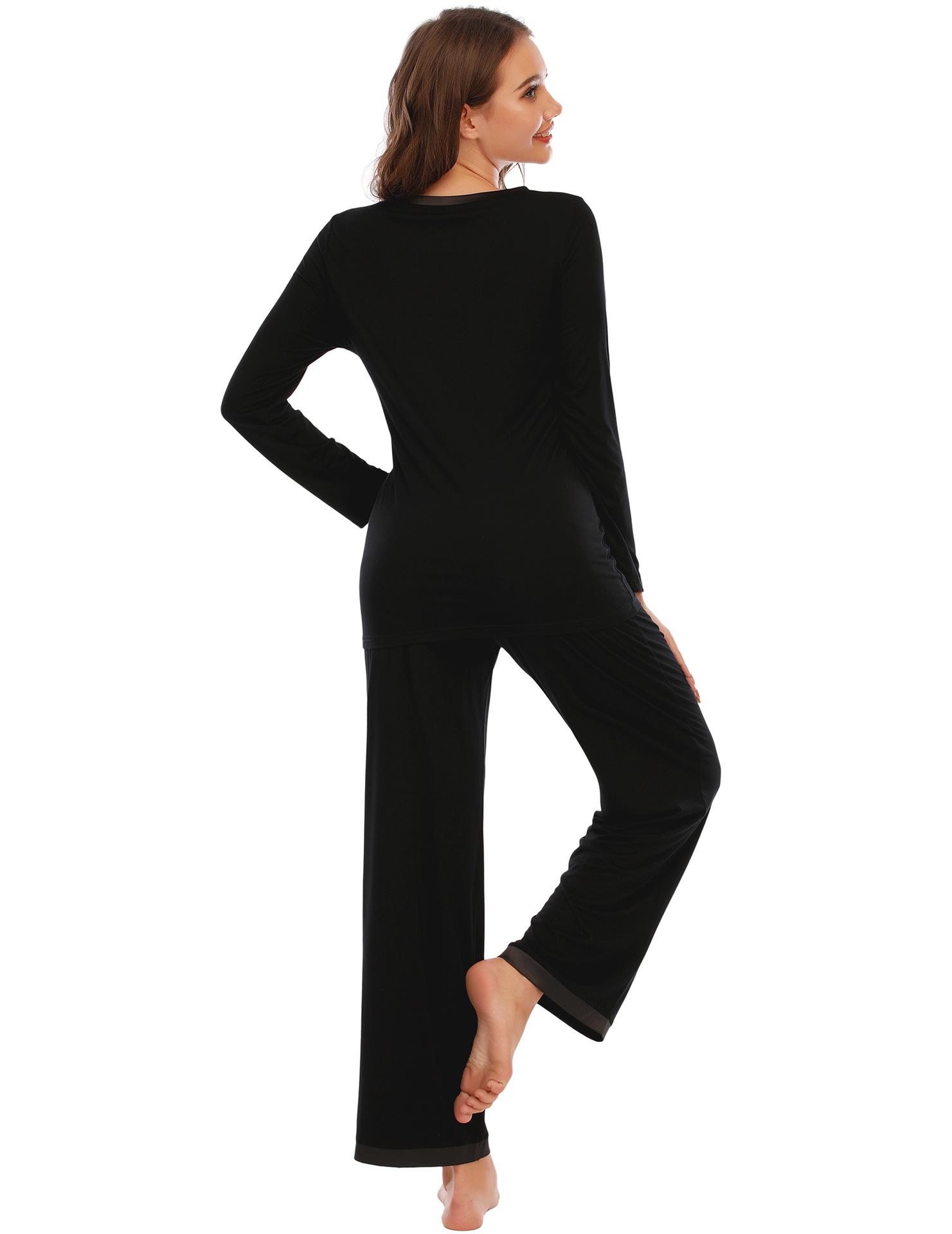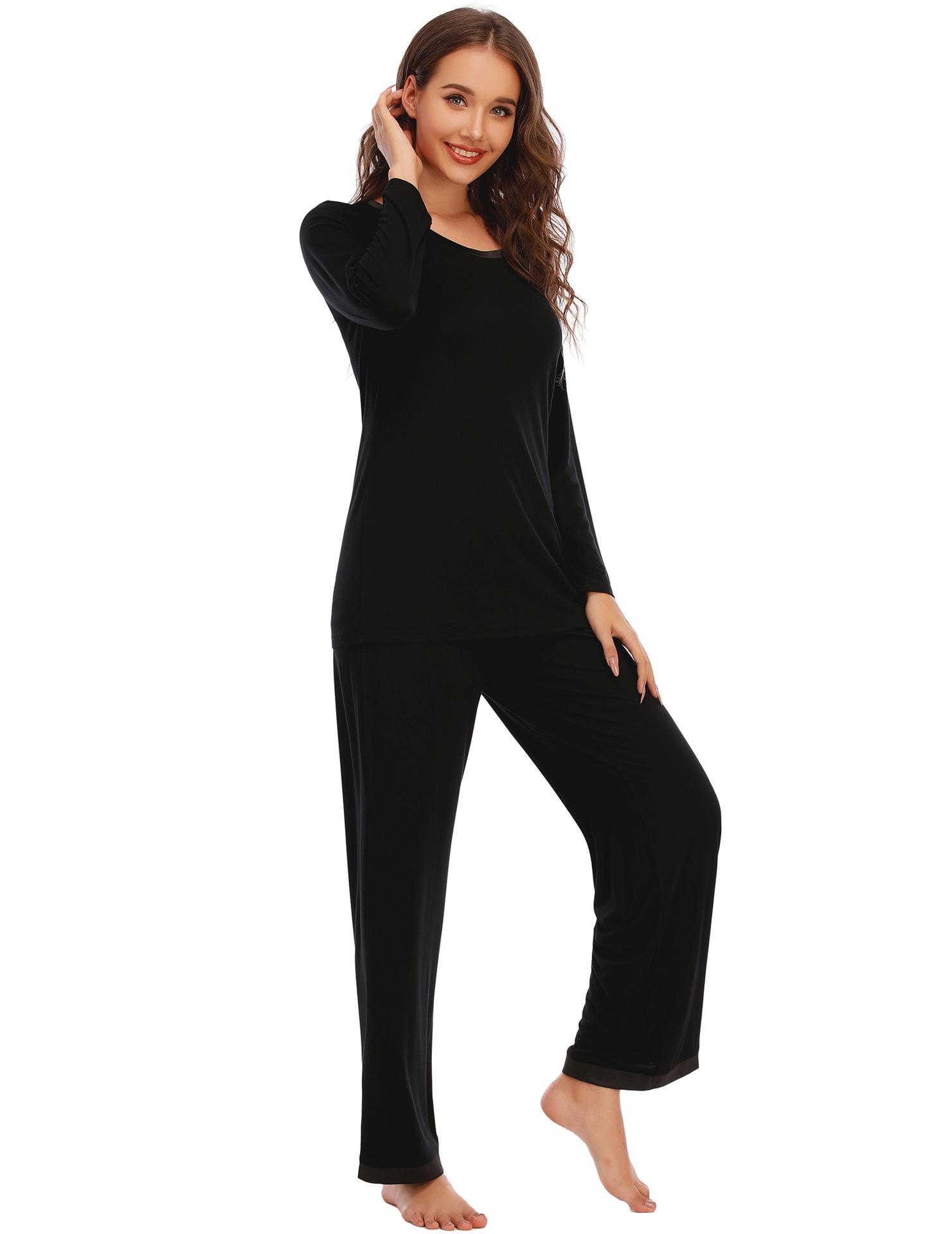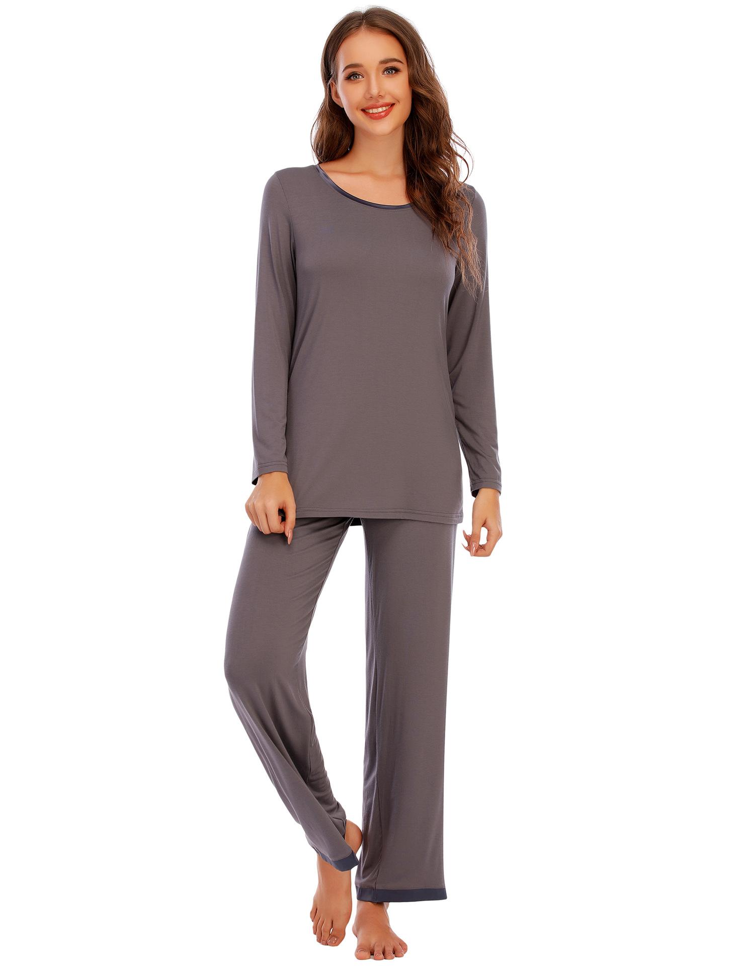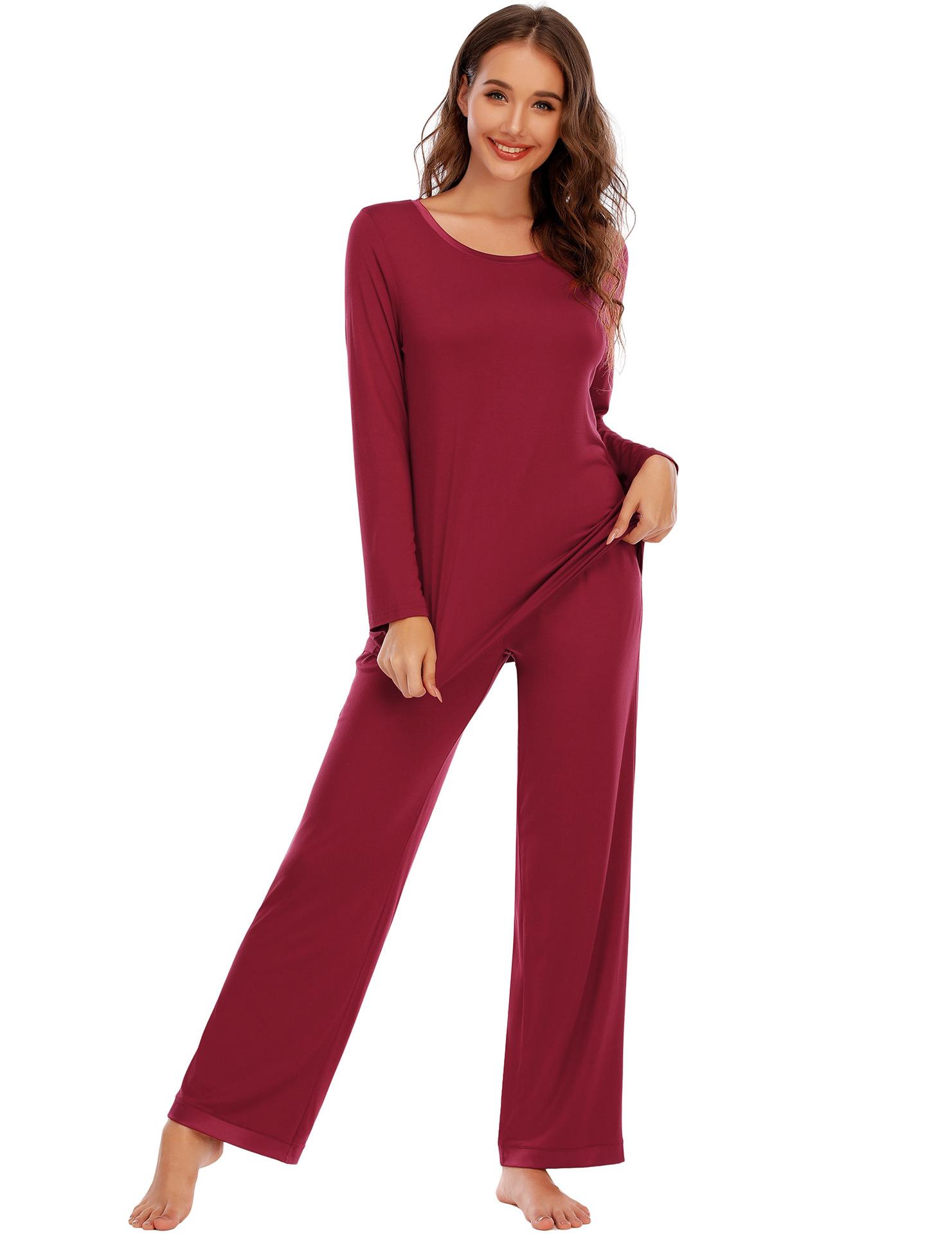 Amazon Pijama Modal para Mujer Color Sólido Manga Corta Cuello Redondo Jersey Pantalón Manga Larga Traje Comodidad en Casa para Mujer