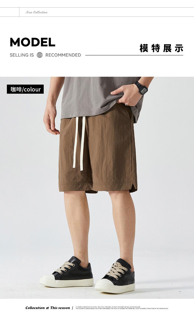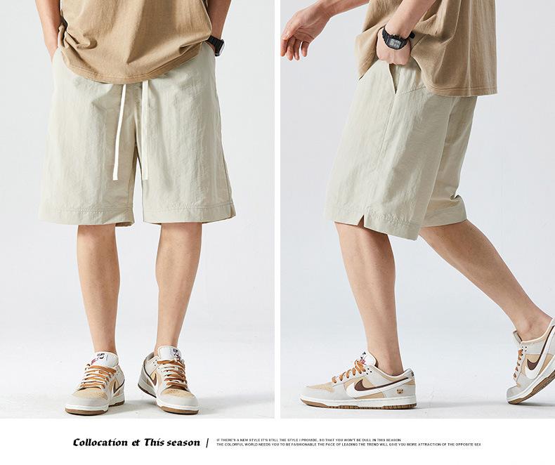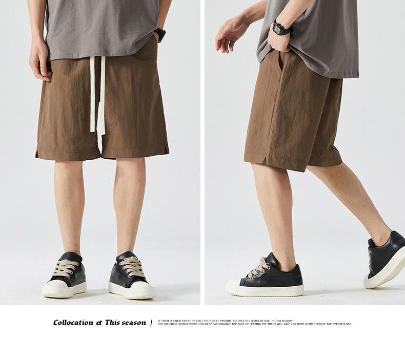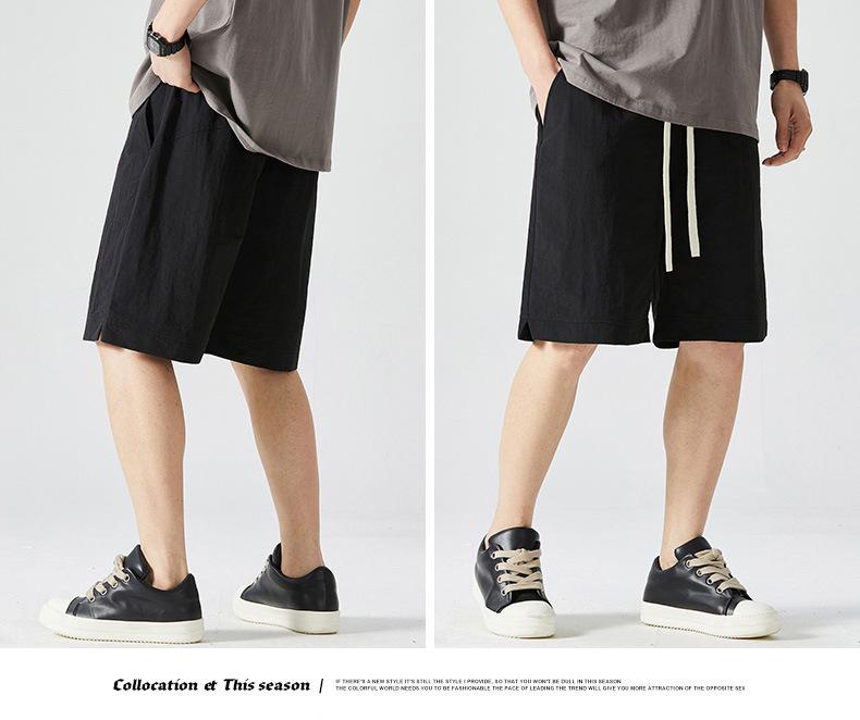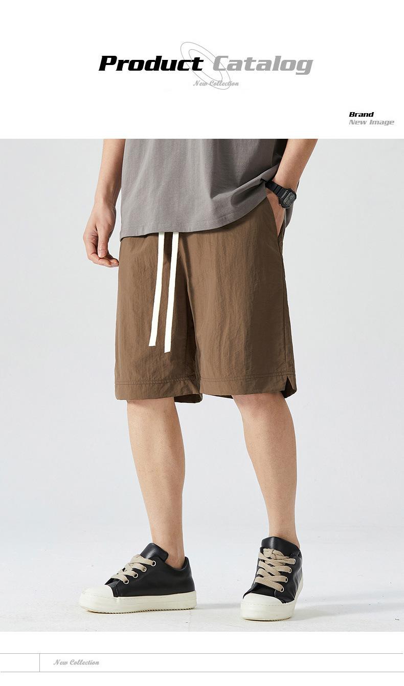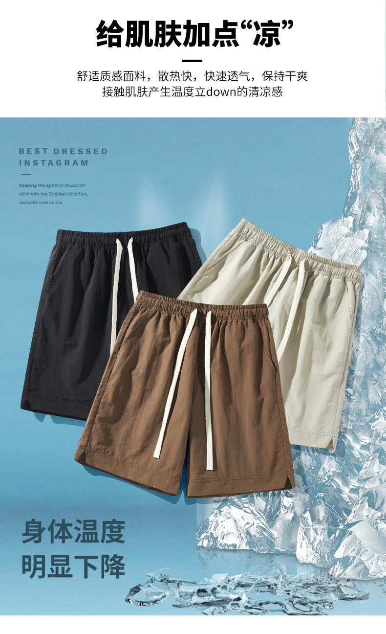 Pantalones cortos de seda de hielo para hombre, de verano, finos, transpirables, de cinco puntos, de marca de moda, holgados, de secado rápido, deportivos, casuales y modernos.