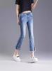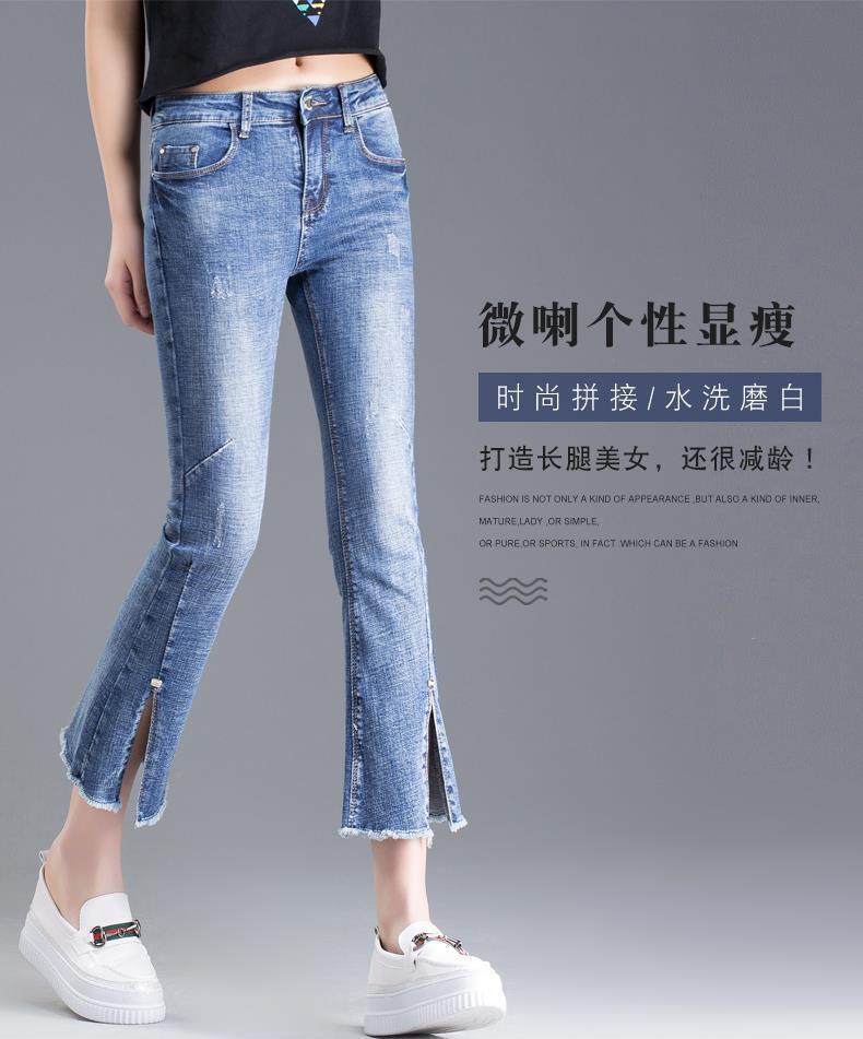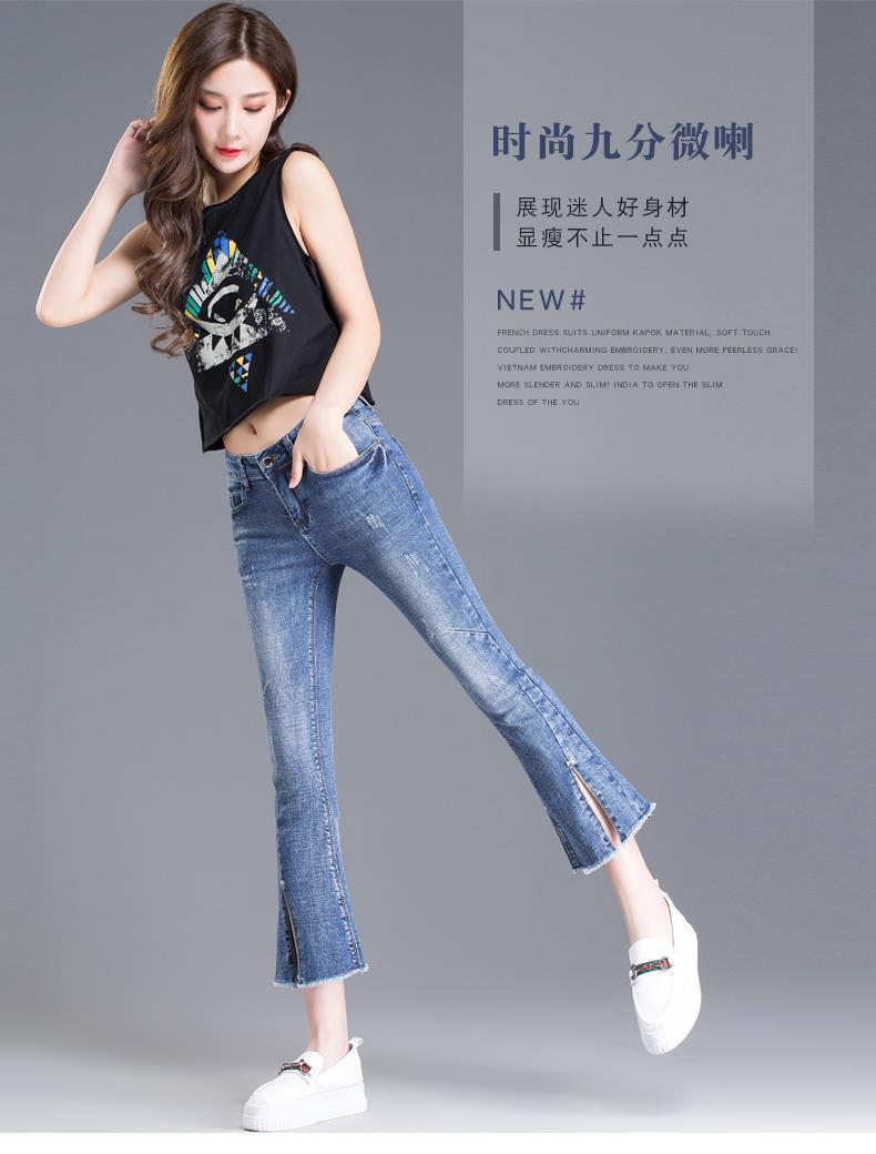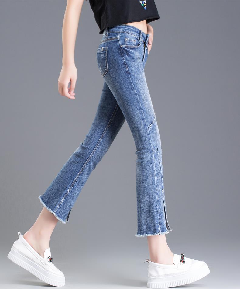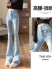 Pantalones Acampanados Delgados de Verano para Mujer, Cintura Alta, Abertura, Mezclilla de Color Claro, Corte Ajustado, Cortos, Elásticos