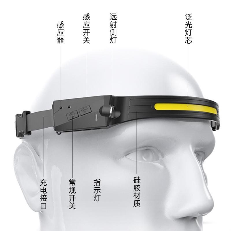 Faro LED COB con Sensor Popular Transfronterizo de Venta Directa, Silicona, Exterior, Larga Duración, Carga USB, Luz de Pesca para Cebo, Pesca Nocturna