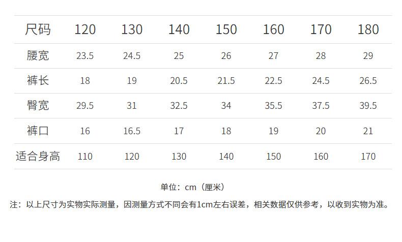 120cm, 130cm, 140cm, 150cm, 160cm, 170cm, 180cm