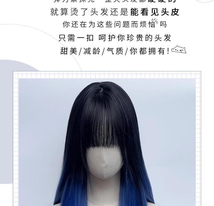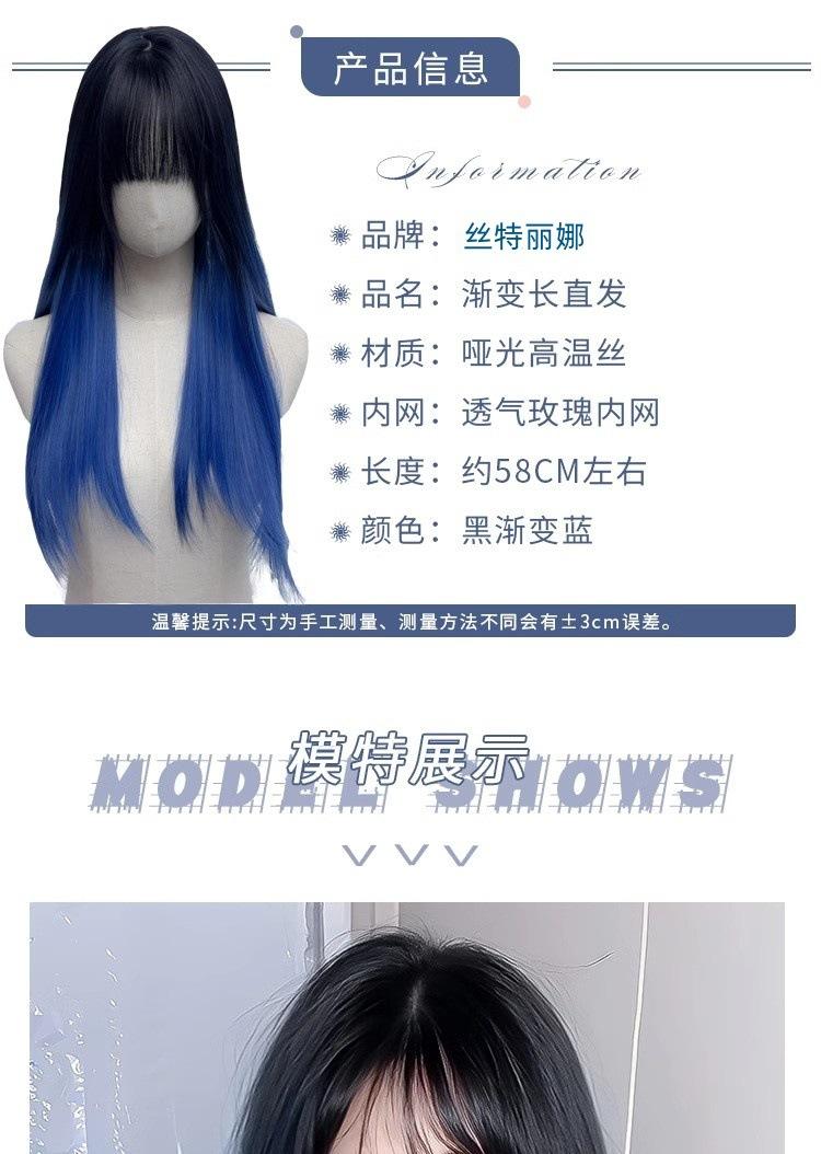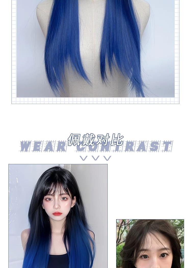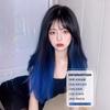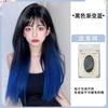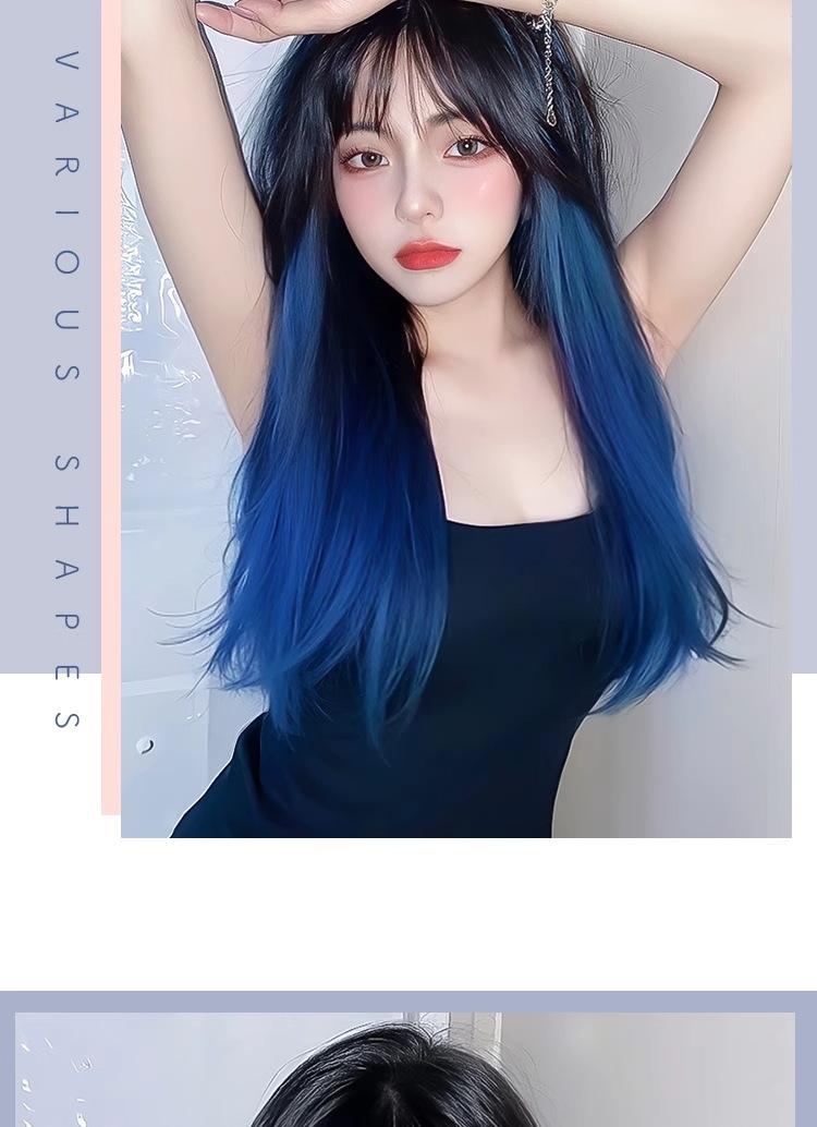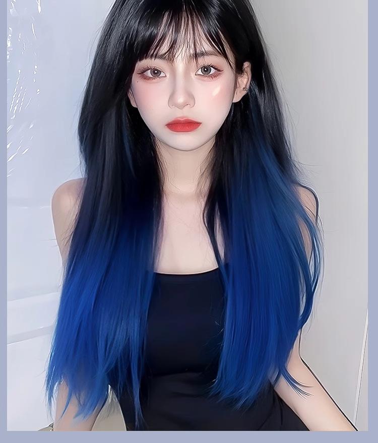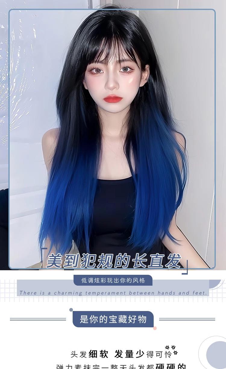 Peluca de mujer de cabello largo con cobertura total, natural, esponjosa, con tinte para pintar, negro degradado, azul, cabello largo y liso, simulación natural, peluca de cabello humano.