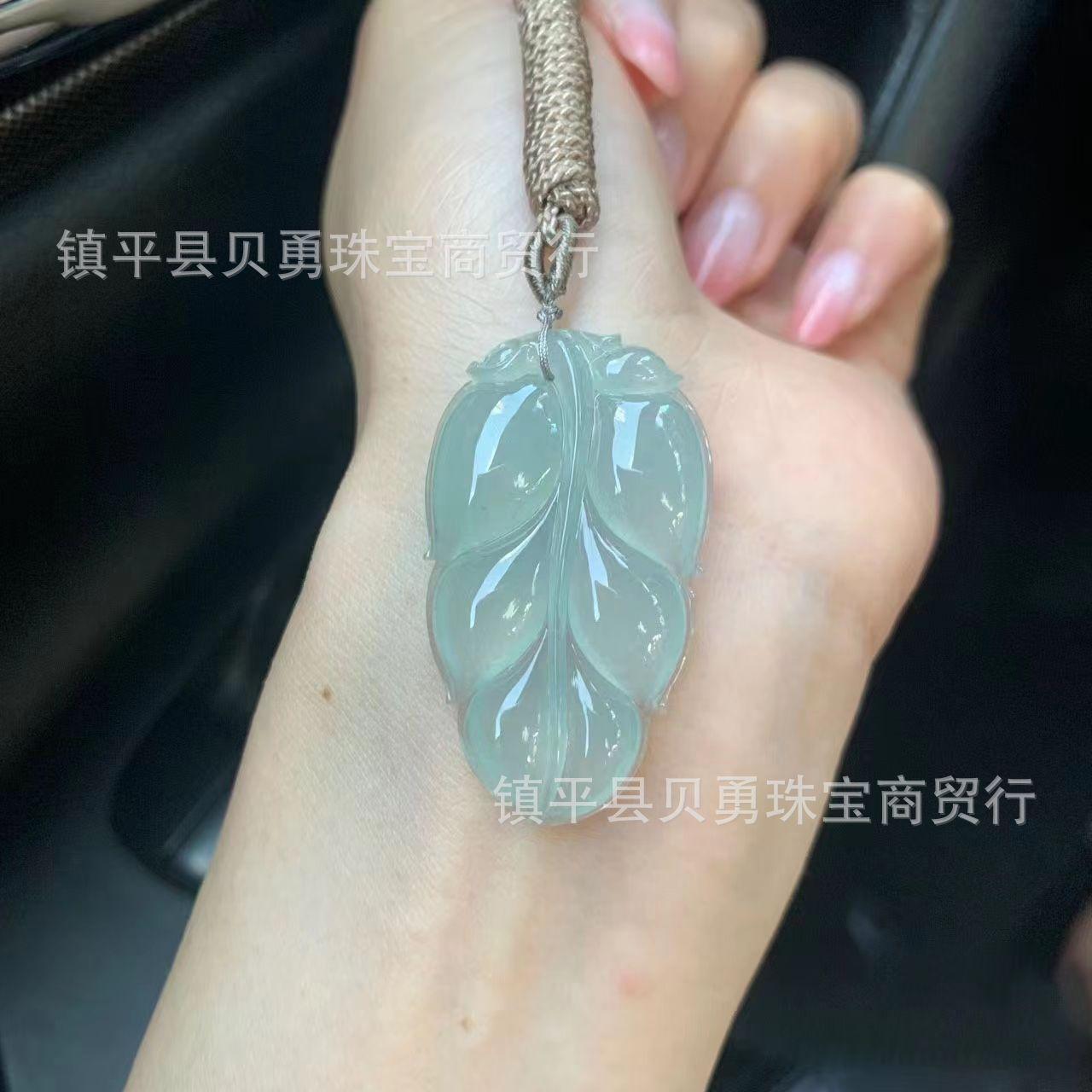 Colgante de hoja de jade con ramas doradas de ágata y calcedonia de semilla de hielo, venta al por mayor de fábrica, colgante femenino de hoja de calcedonia verde esmeralda natural