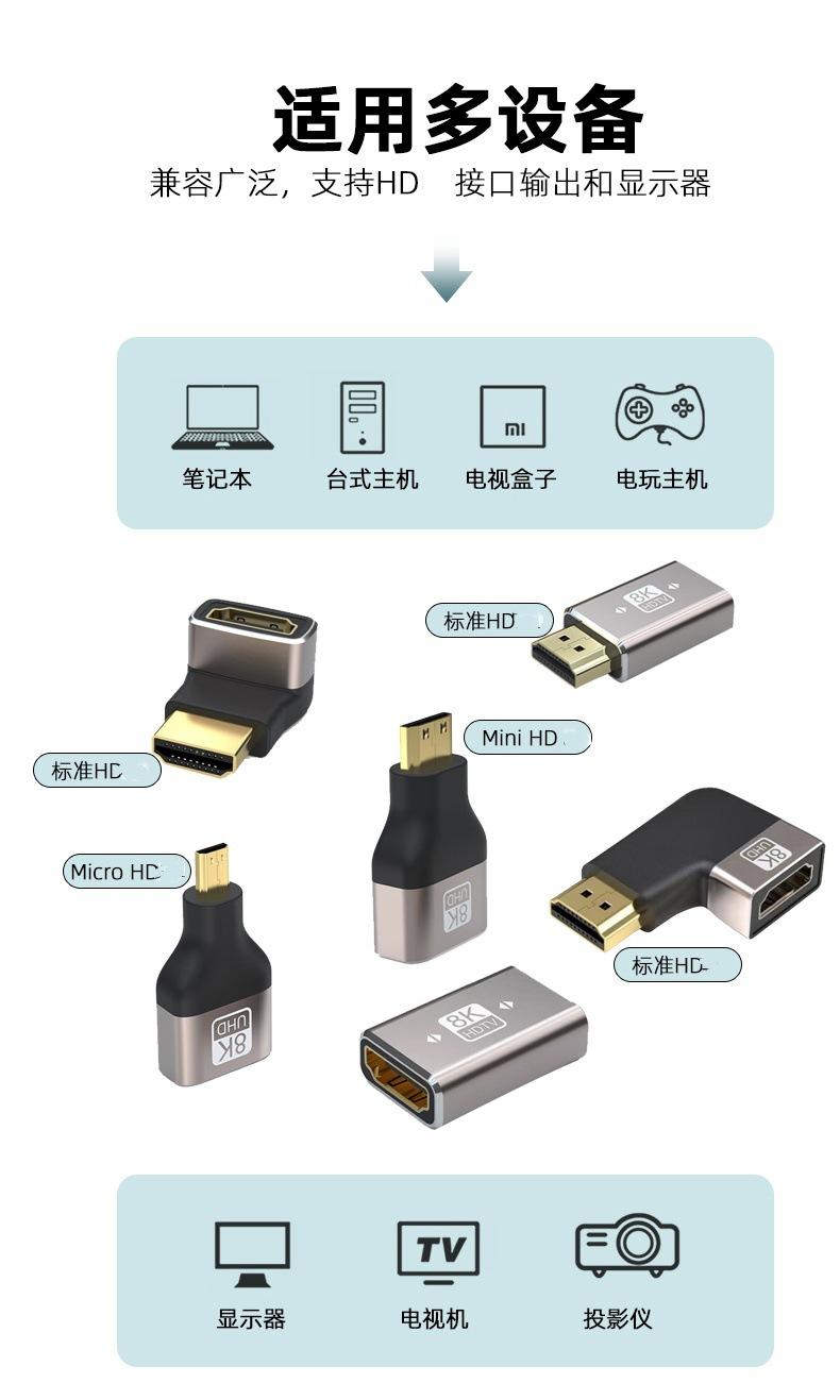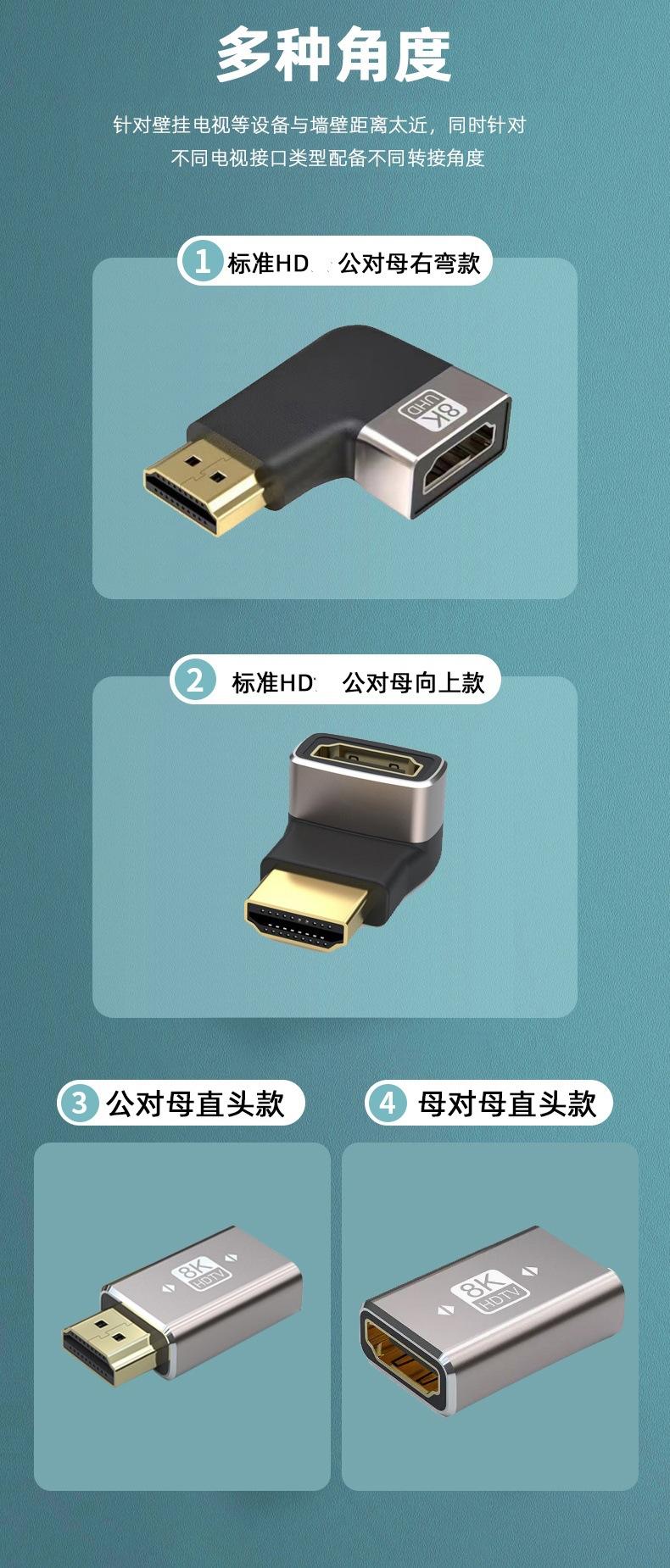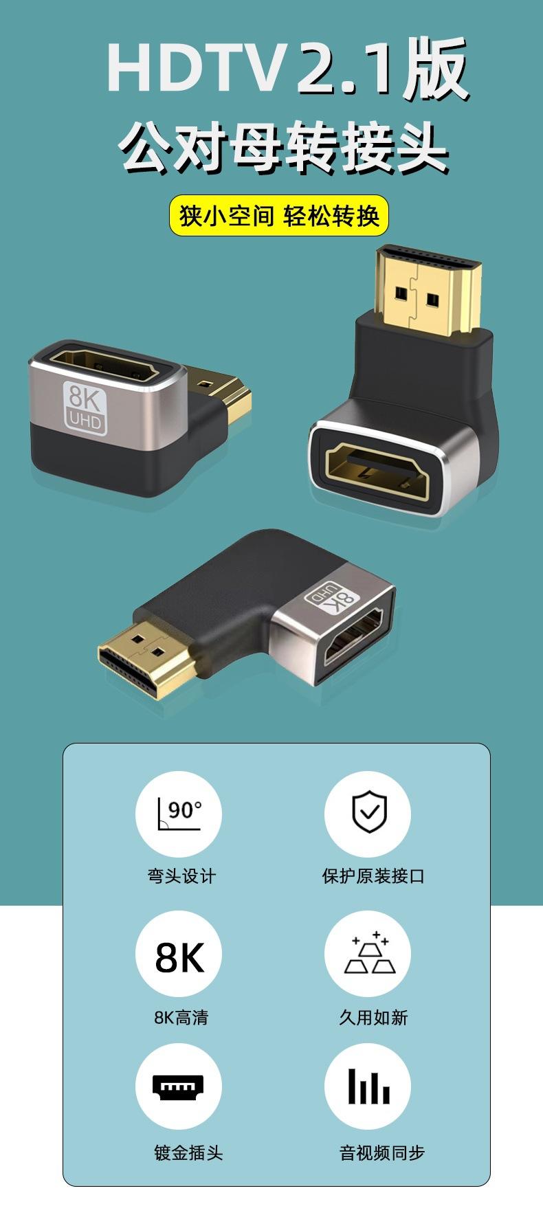Conector HDMI2.1 Computadora Televisor Decodificador Monitor Proyector Adaptador de Codo Aleación de Aluminio 8K