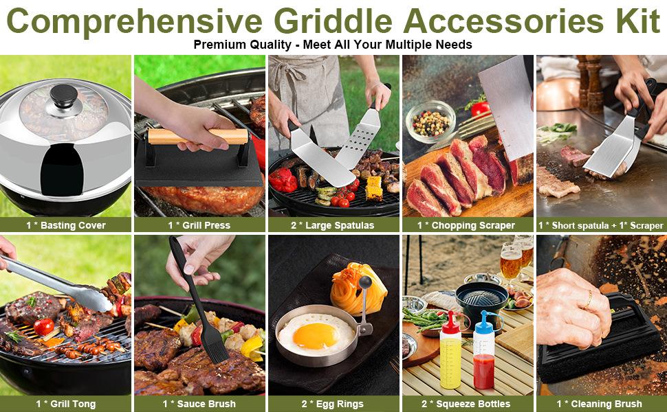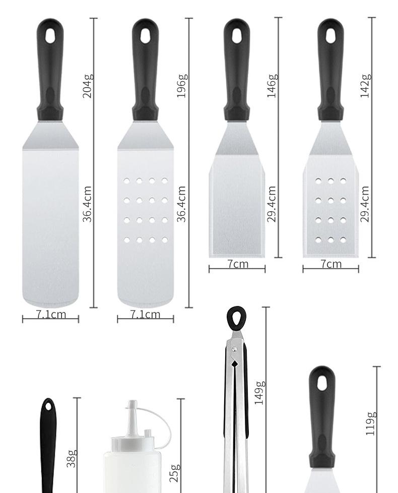 Juego de herramientas para barbacoa de acero inoxidable en stock de Amazon, 16 piezas, pala para cocinar al aire libre, parrilla combinada