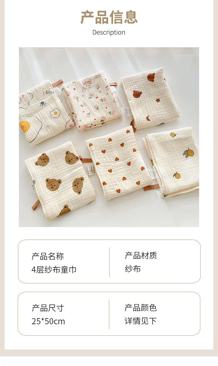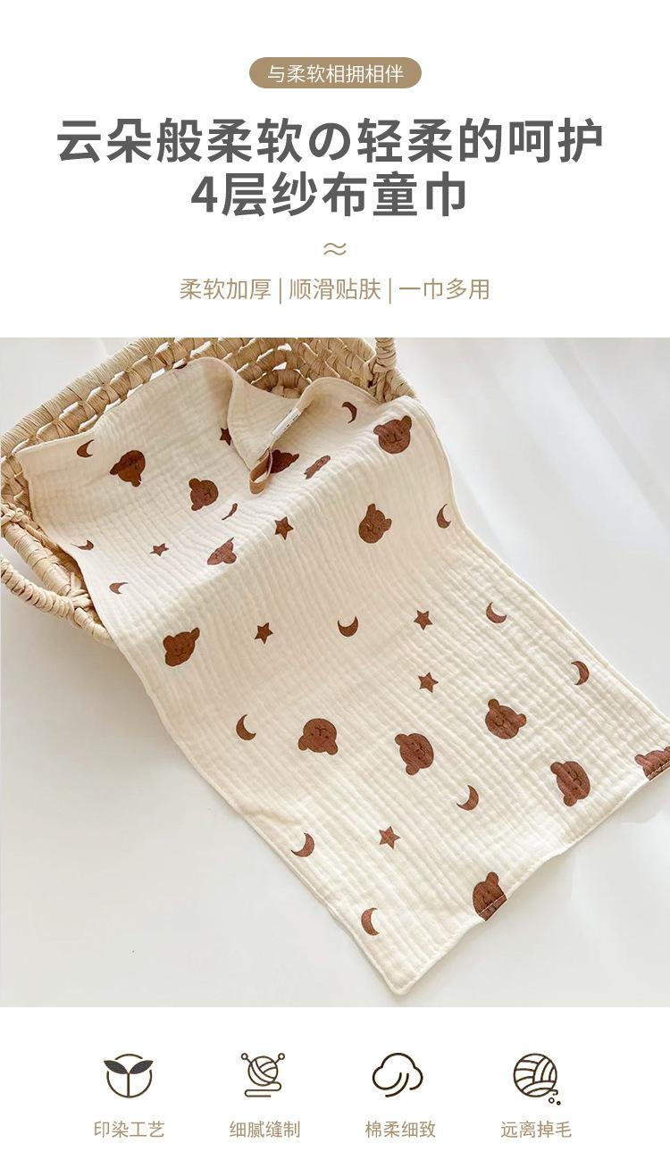 Toalla suave de gasa para bebé de cuatro capas para niños, 25 x 50 cm, toalla pequeña absorbente para jardín de infantes, venta al por mayor