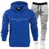 Sudadera con capucha y pantalones para hombre, traje deportivo informal de invierno con forro polar, sudadera cálida disponible en stock.