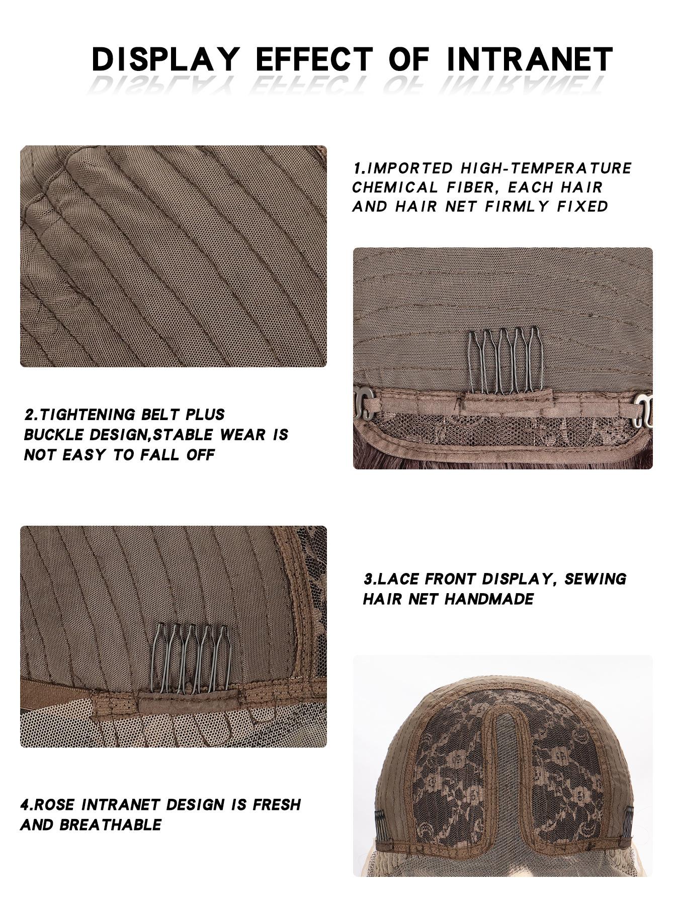 ![]() Peluca tejida a mano con encaje frontal de fibra química, tocado de moda europea y americana, peluca Bob de pelo corto y liso, fábrica de Xuchang