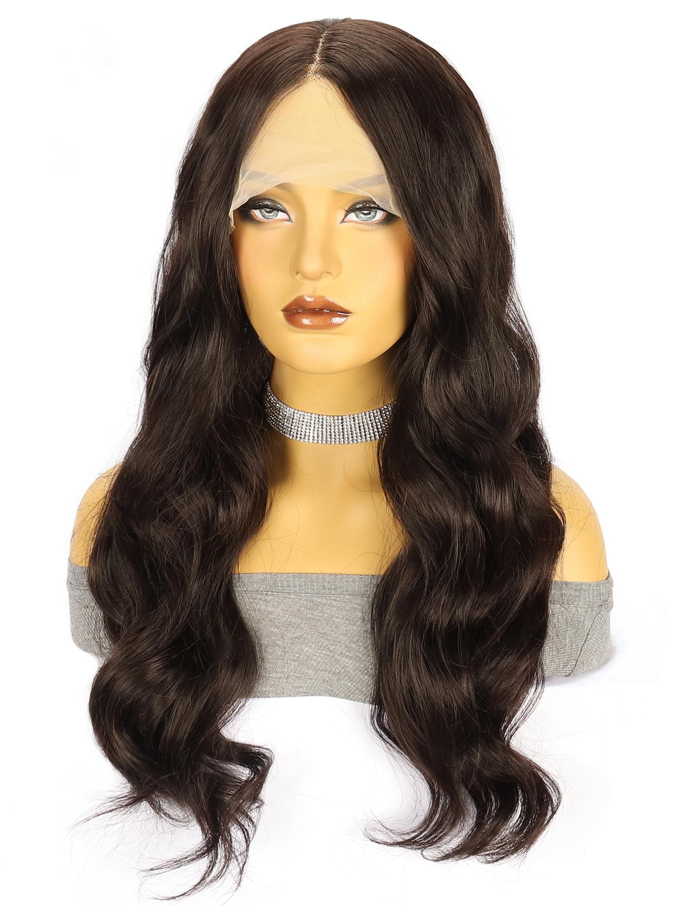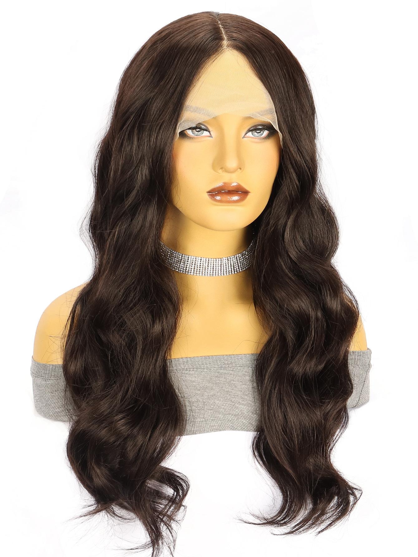 ![]() Peluca de fibra sintética con encaje frontal de 13*4*1T, peluca con diadema marrón degradado, cabello largo y liso, venta al por mayor