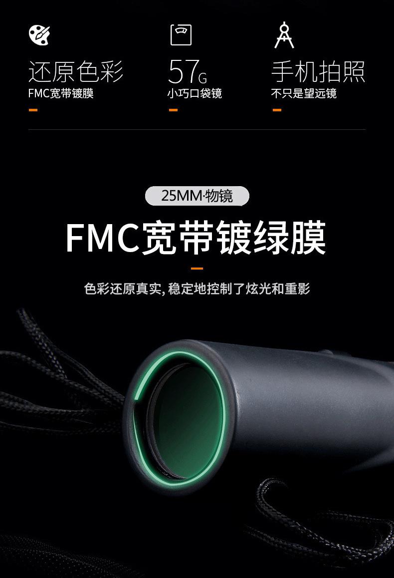 8x25 monocular telescope + telescope bag + instruction manual + mirror rope + mirror cloth + color box