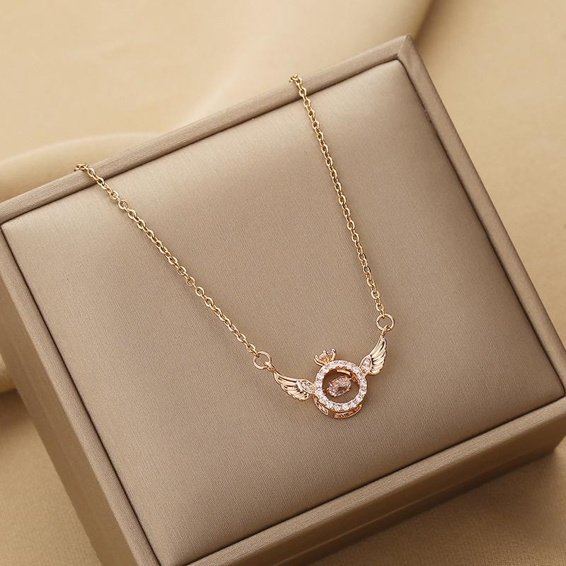 Collar Transfronterizo Nuevo Alas de Ángel Acero de Titanio Colgante Inteligente Latido del Corazón Diseño Nicho Collar Cadena Clavícula