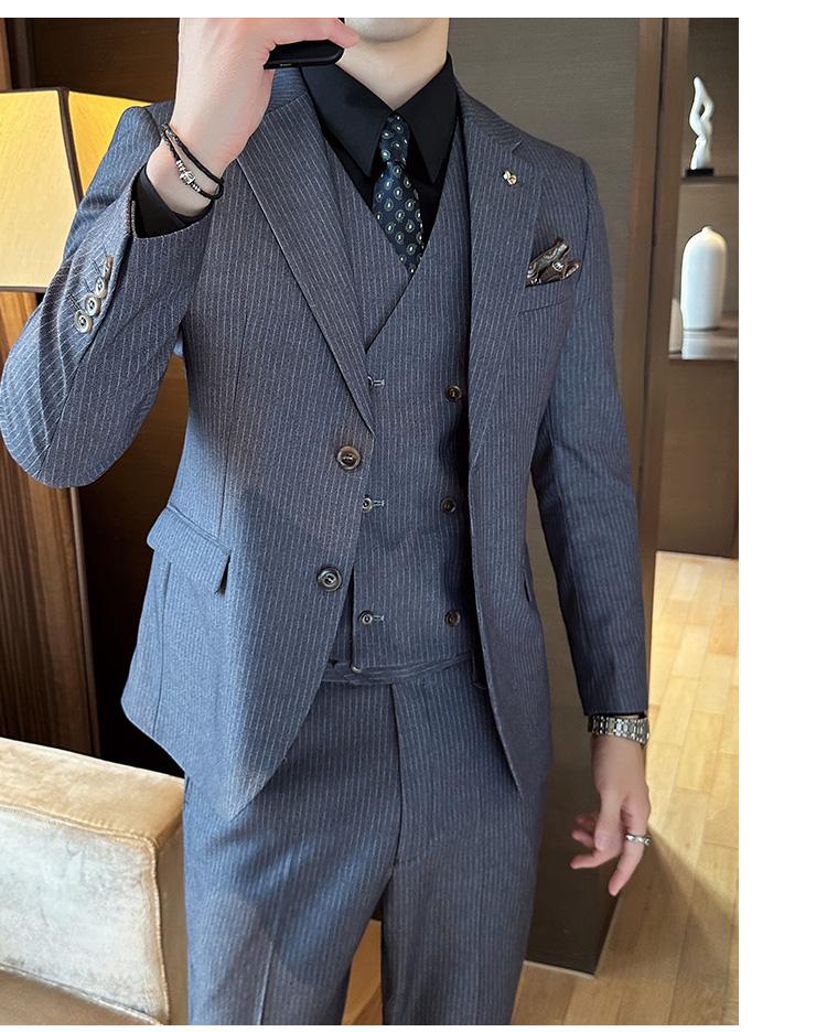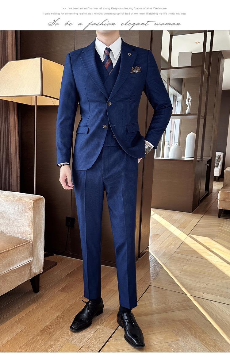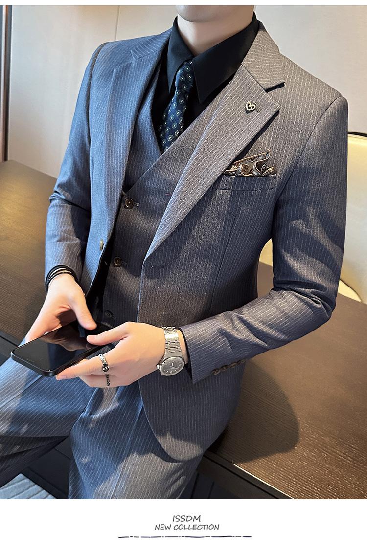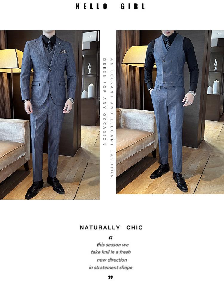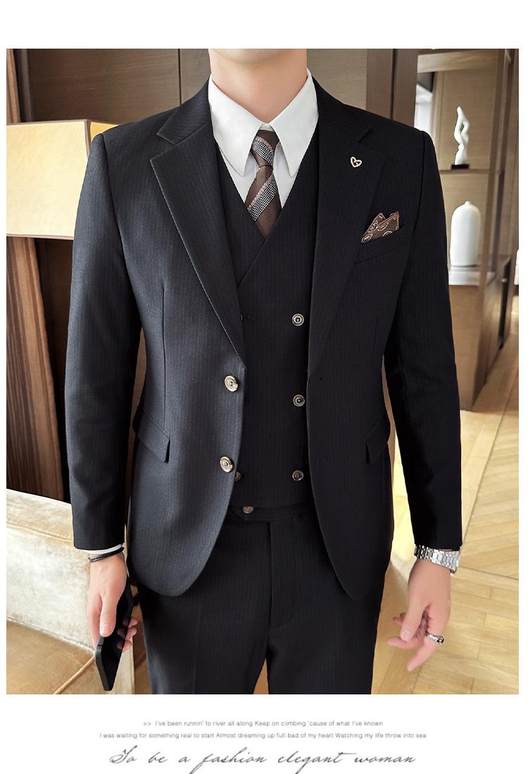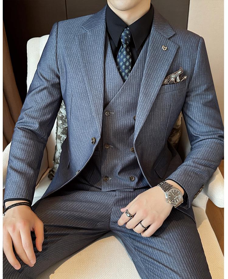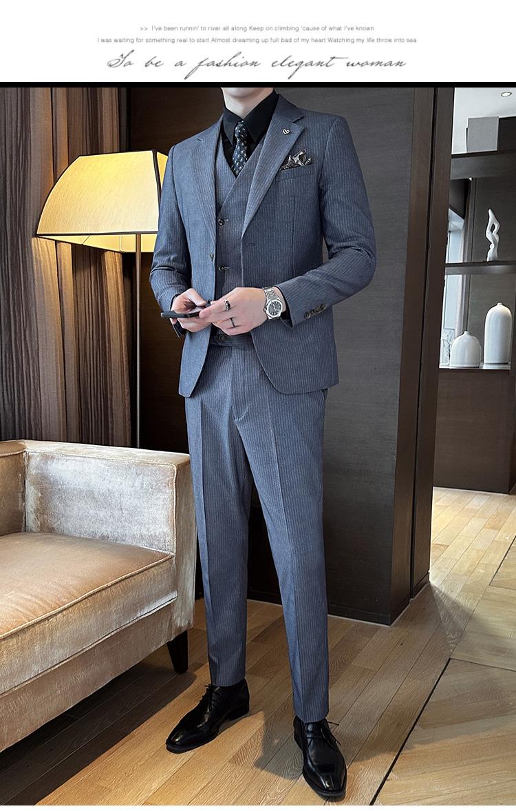 Traje de hombre al por mayor de un solo pecho, estilo coreano, corte entallado, a rayas, para novio, padrino, traje formal de tres piezas