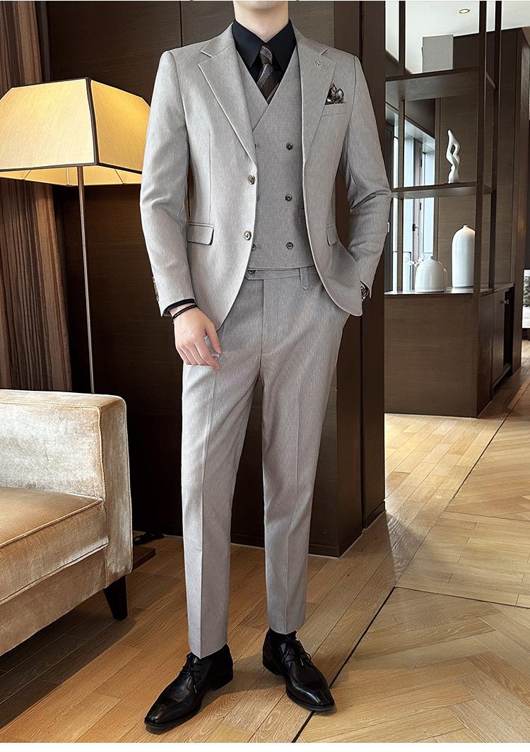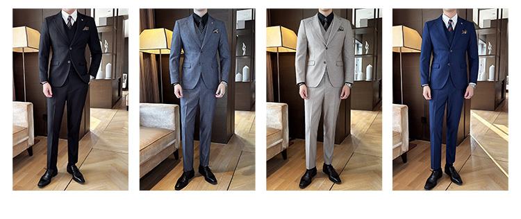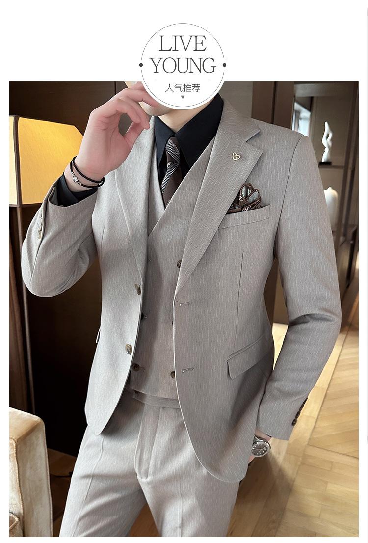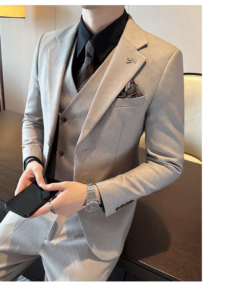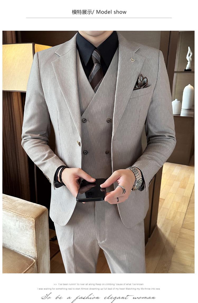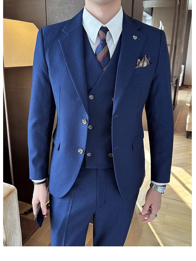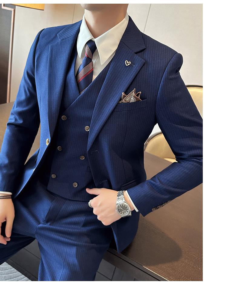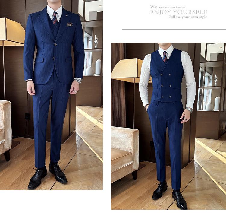 Traje de hombre al por mayor de un solo pecho, estilo coreano, corte entallado, a rayas, para novio, padrino, traje formal de tres piezas