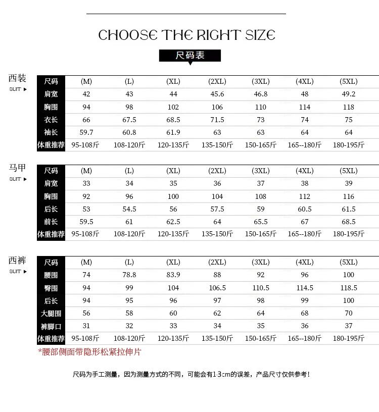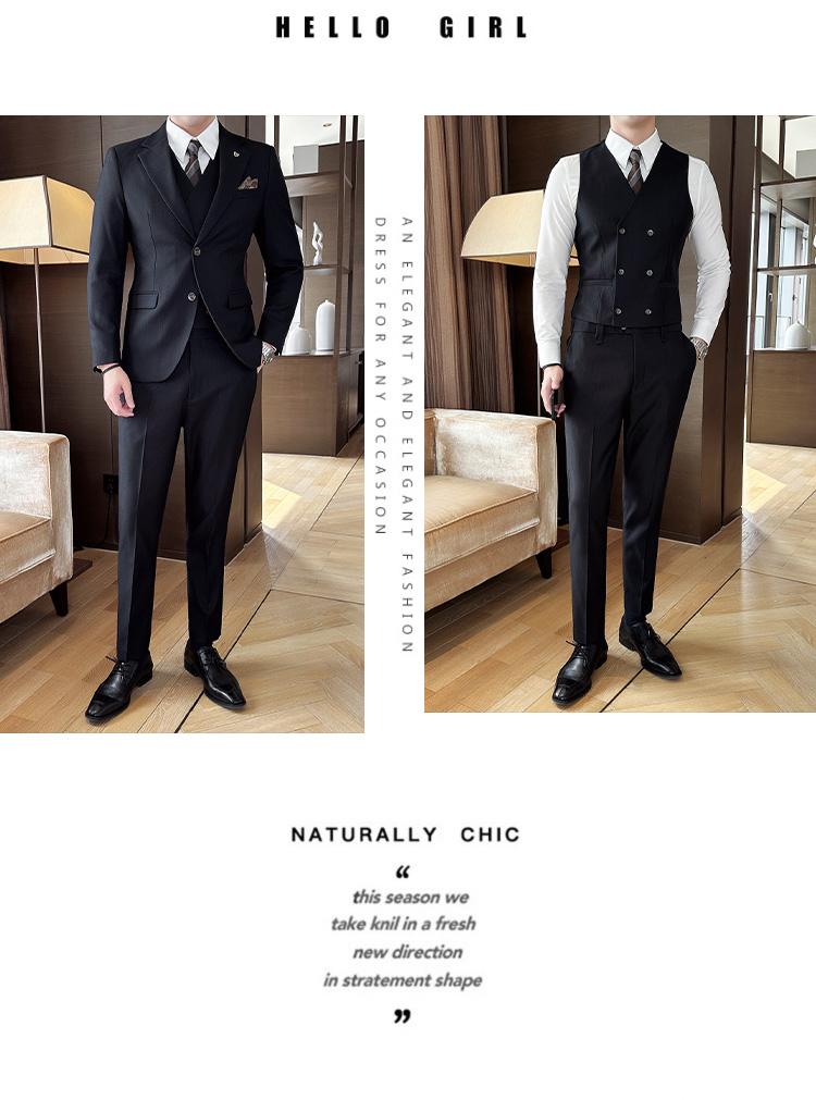 Black (suit + vest + trousers), Blue (suit + vest + trousers), Off-white (suit + vest + trousers), Gray blue (...
