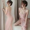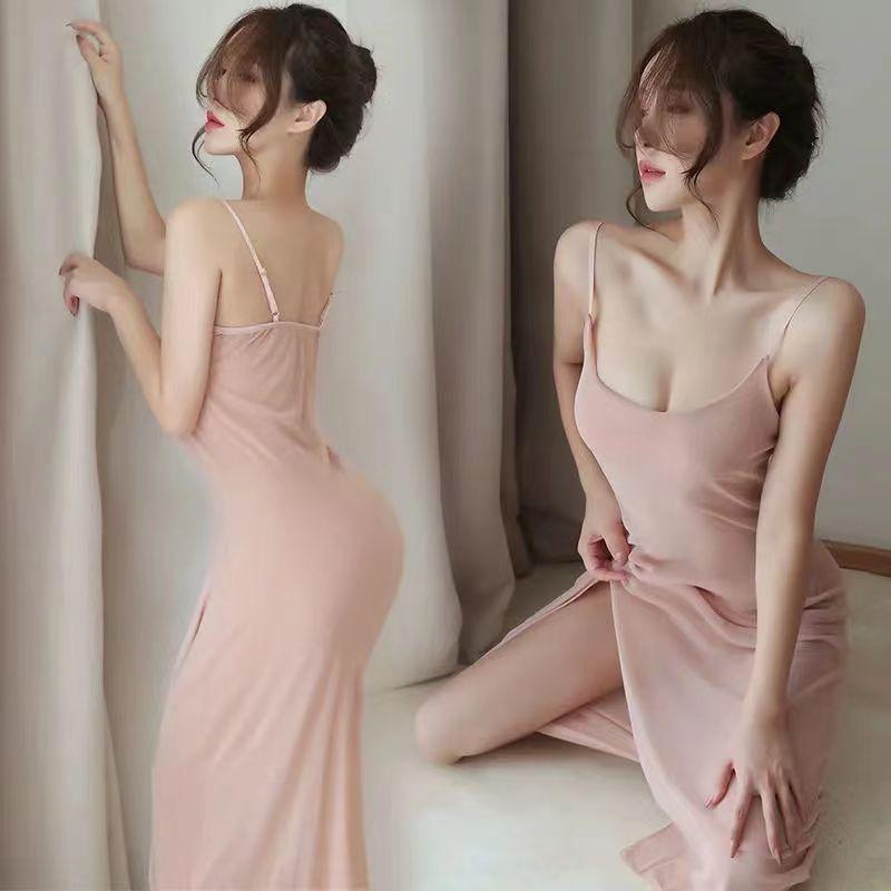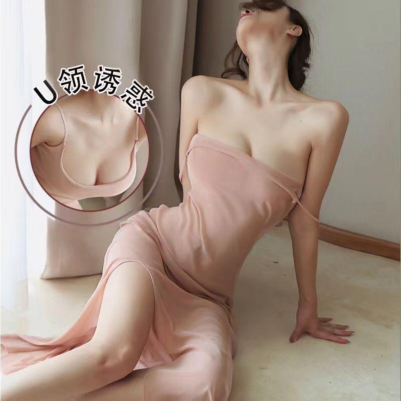 Lencería sexy pura deseo pequeño pecho gran abertura transparente libre vestido largo camisón pasión tentación pijama traje
