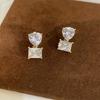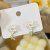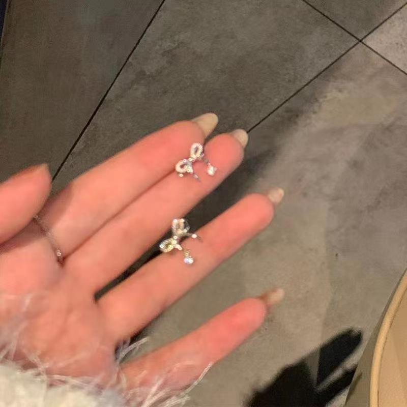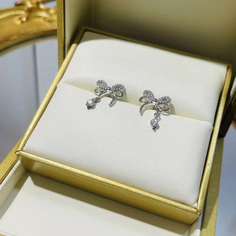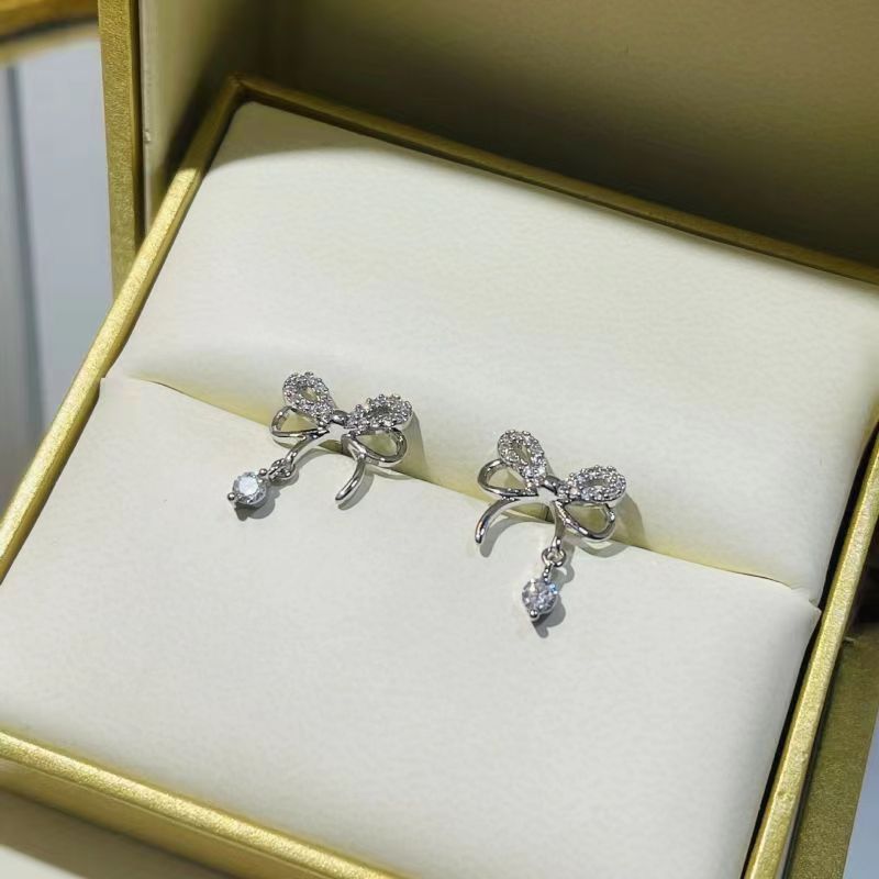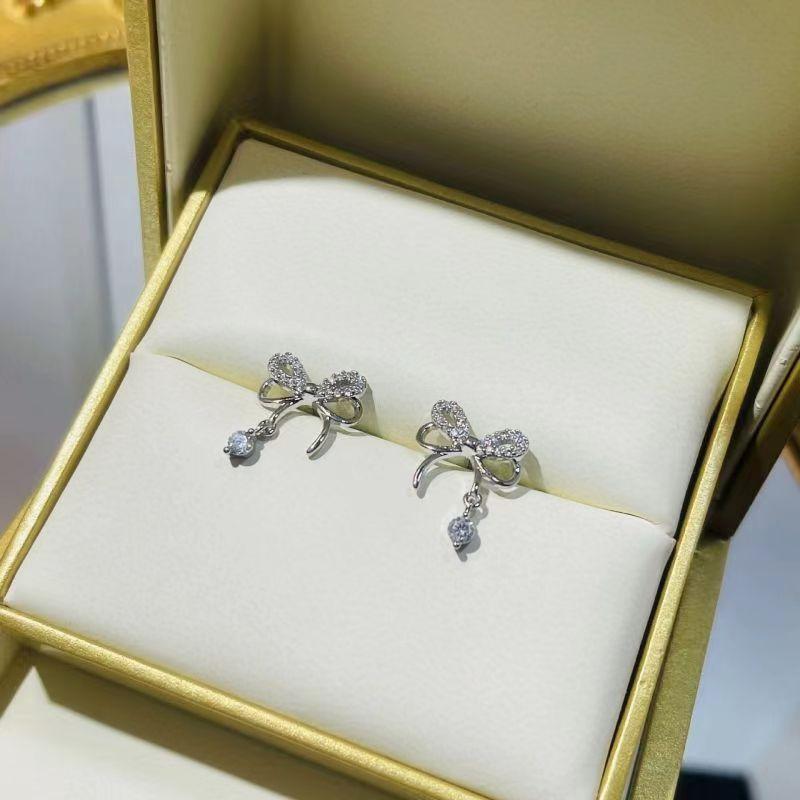 Exquisitos pendientes de circonita con lazo pequeño, diseño de nicho femenino, pendientes que combinan con todo, elegantes pendientes de lujo ligeros de alta calidad.