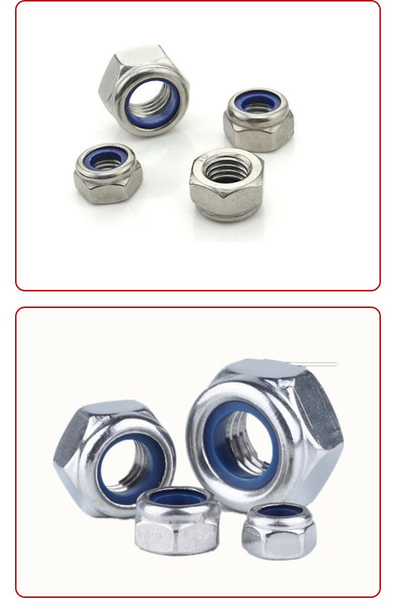 Tuerca de seguridad Hierro galvanizado Acero inoxidable 304 Brida con metal autoblocante Nylon Tuerca antiaflojamiento M8 Tuerca hexagonal