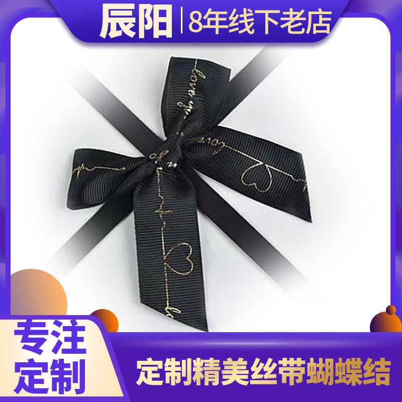 Lazo de cinta estampado en oro producto terminado estilo ins accesorios de decoración de caja de regalo lazo cruzado atado a mano venta al por mayor |