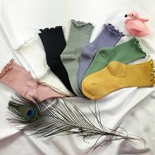 Calcetines de media caña con volantes de líneas paralelas Haiyijia para mujer, estilo japonés, calcetines con orejas de madera, color caramelo dulce, calcetines largos de felpa, estilo universitario