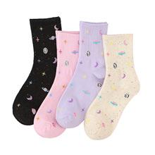 Calcetines cielo estrellado estilo nuevo calcetines de mujer versión coreana calcetines de moda ins calcetines largos cielo estrellado cósmico de mujer calcetines de media caña planetarios de mujer