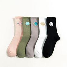 2020 otoño e invierno nuevo estilo estilo universitario calcetines de planeta bordados estilo japonés media caña color caramelo calcetines transpirables para dama al por mayor