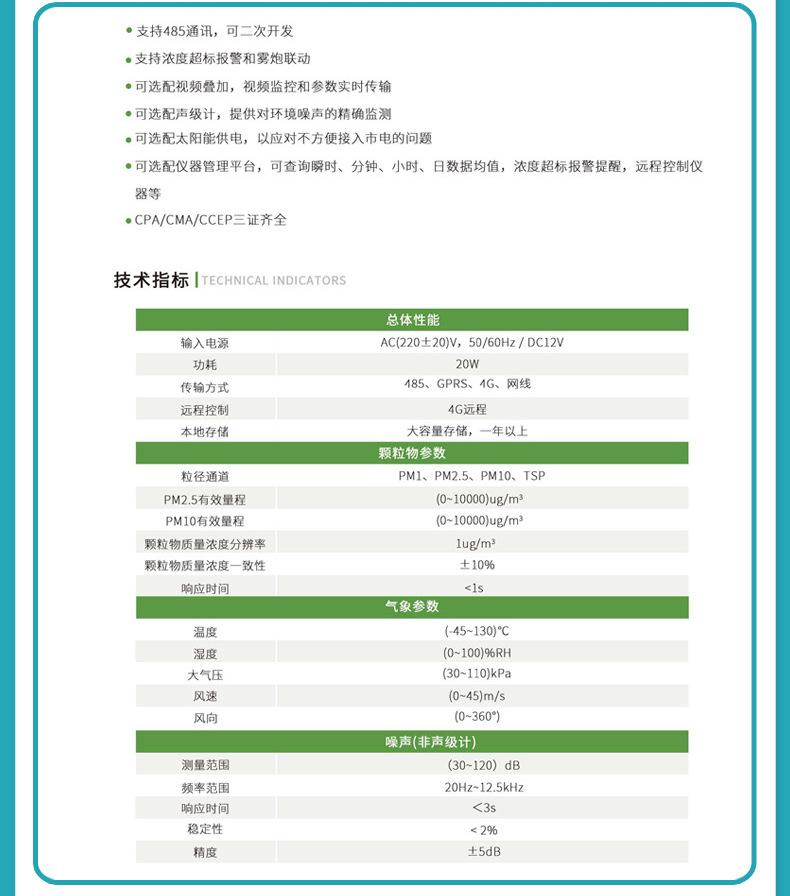 Detector de polvo, ruido y aire PM2.5 PM10 TSP para monitoreo en línea del sitio.