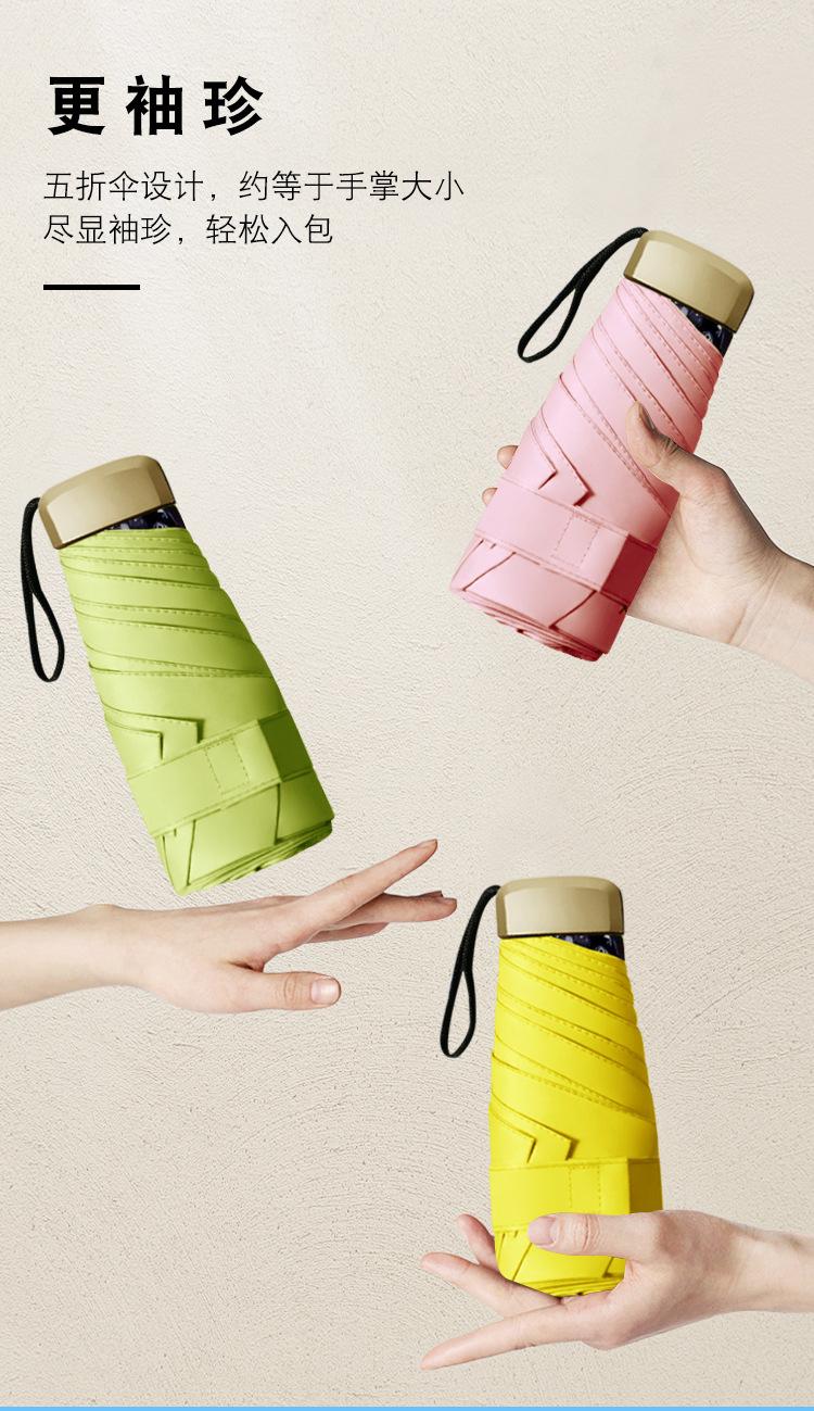 Paraguas cápsula plano 50% de descuento Paraguas de 6 varillas Mini pequeño transparente protección solar sombrilla sombrilla femenina pegamento negro bolsillo plegable soleado y lluvioso