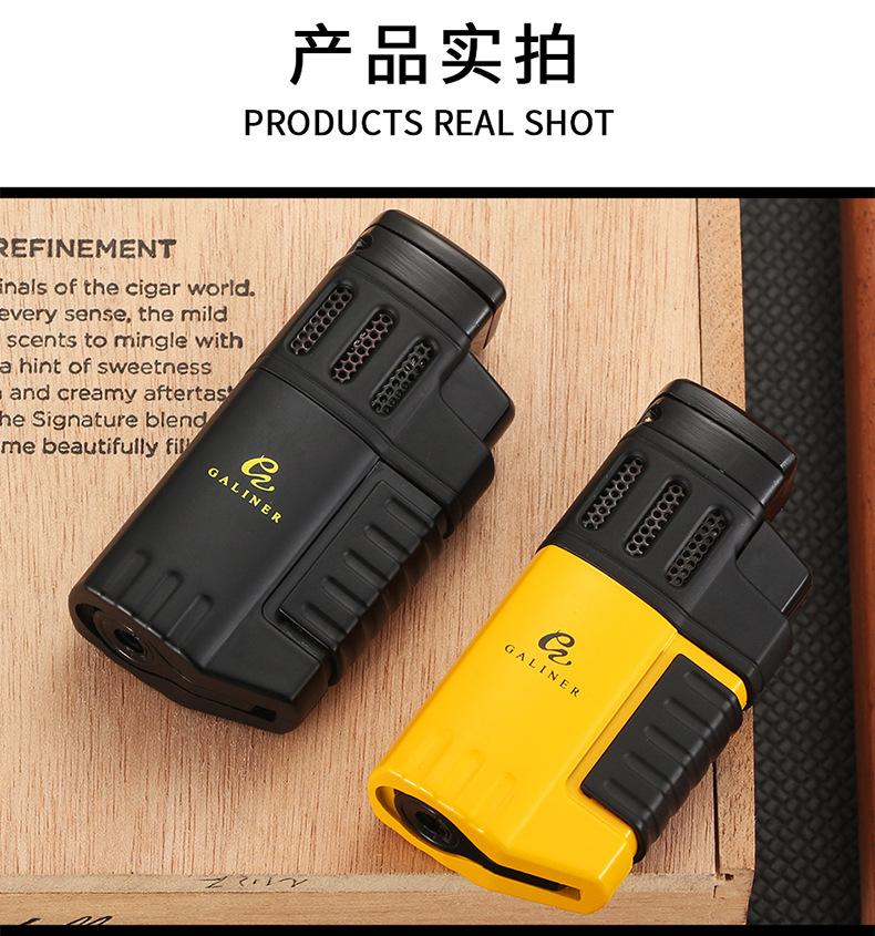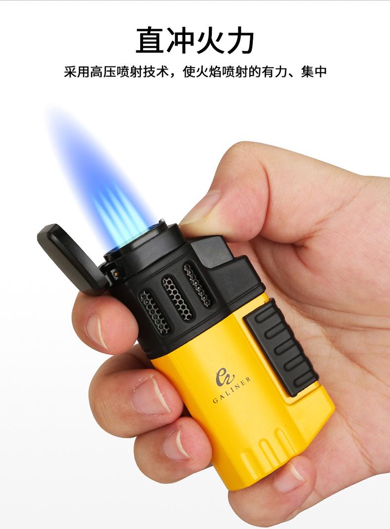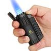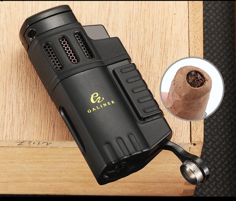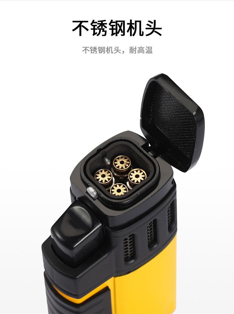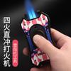 Encendedor de metal portátil de cuatro fuegos, recto, a prueba de viento, inflable, con caja de regalo para taladro