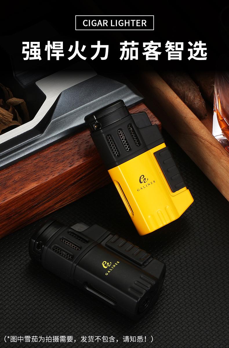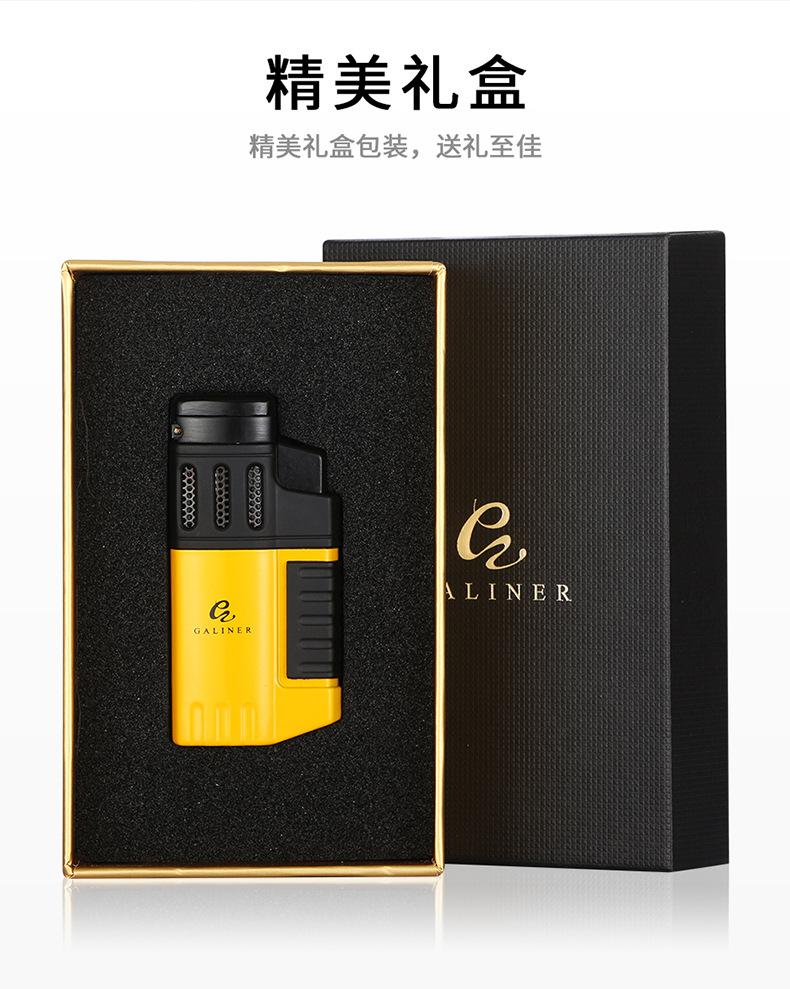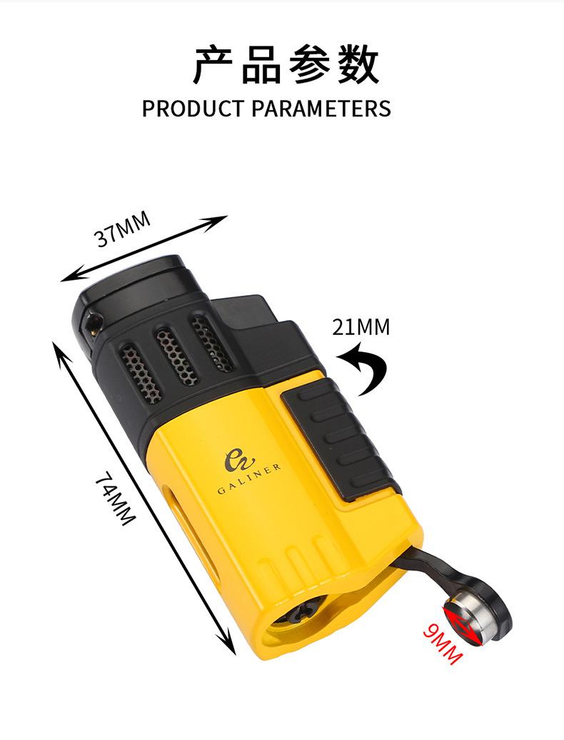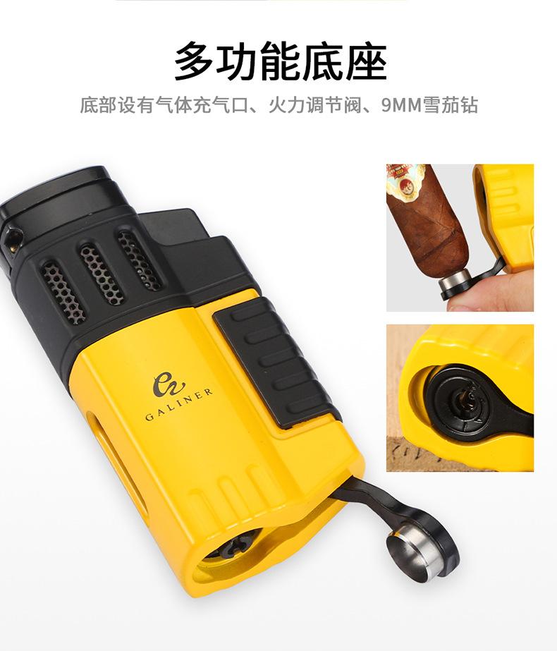 Encendedor de metal portátil de cuatro fuegos, recto, a prueba de viento, inflable, con caja de regalo para taladro