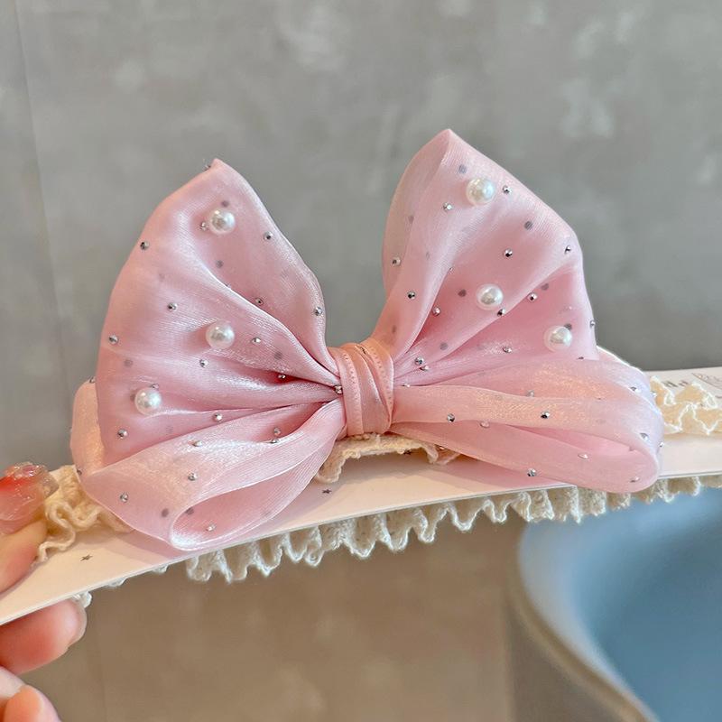 Banda para el cabello para bebé, lazo de perla tridimensional, suave y agradable para la piel, accesorios elásticos para el cabello, novedad de 2024