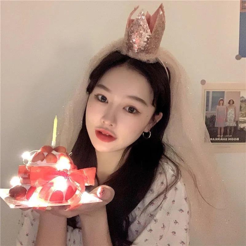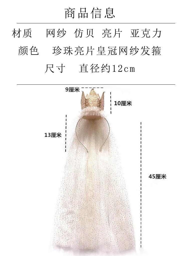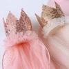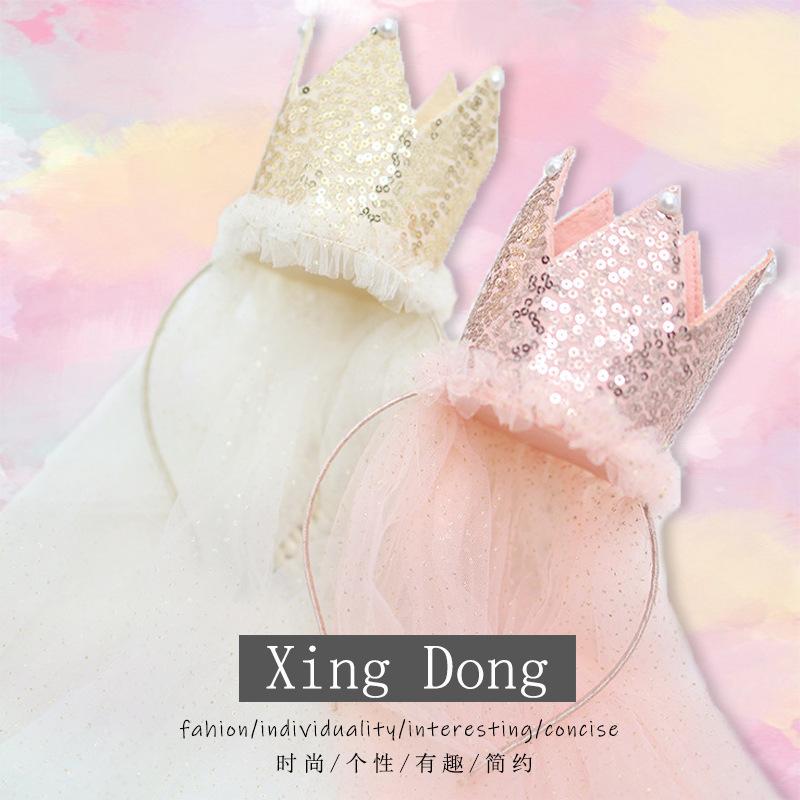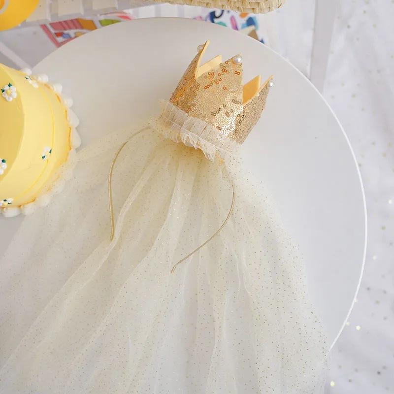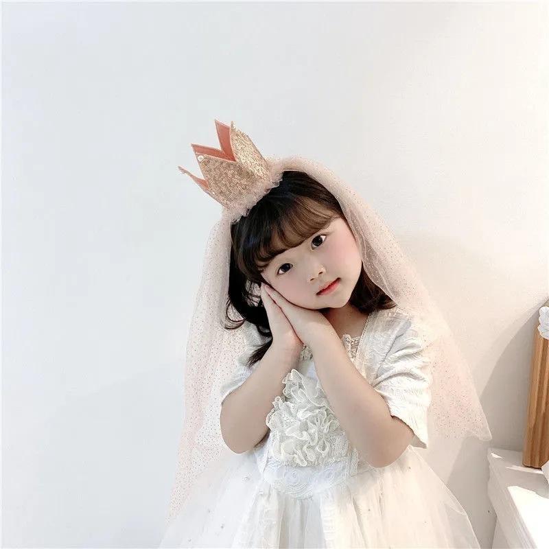 Corona grande con lentejuelas para niña, velo para niña, tocado para bebé, diadema de malla para cumpleaños, diadema para niña, accesorios para el cabello al por mayor