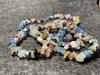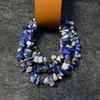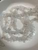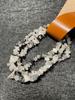 Collar de joyería artesanal con piedras crudas de cristal blanco, cuentas sueltas de ágata y amatista, cuentas de vidrio irregulares.