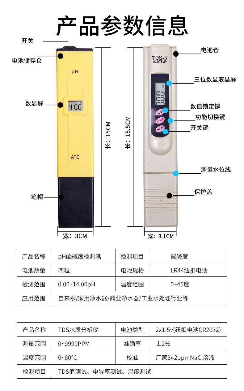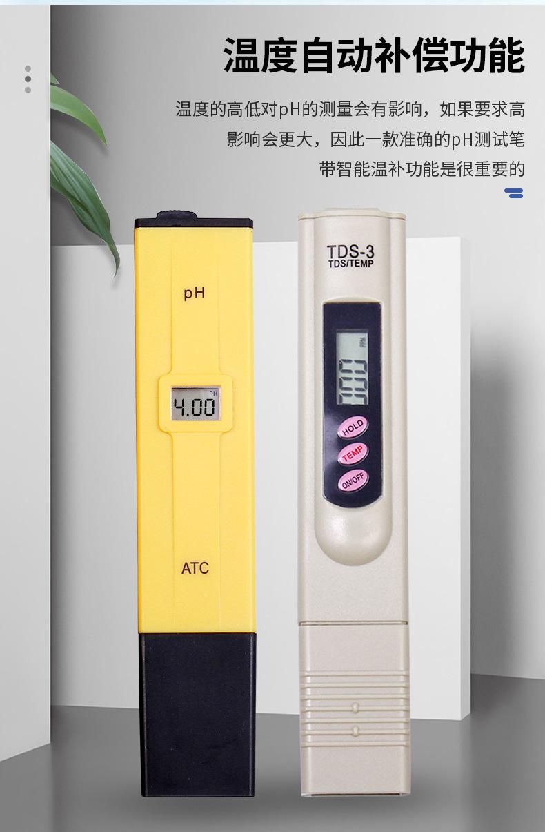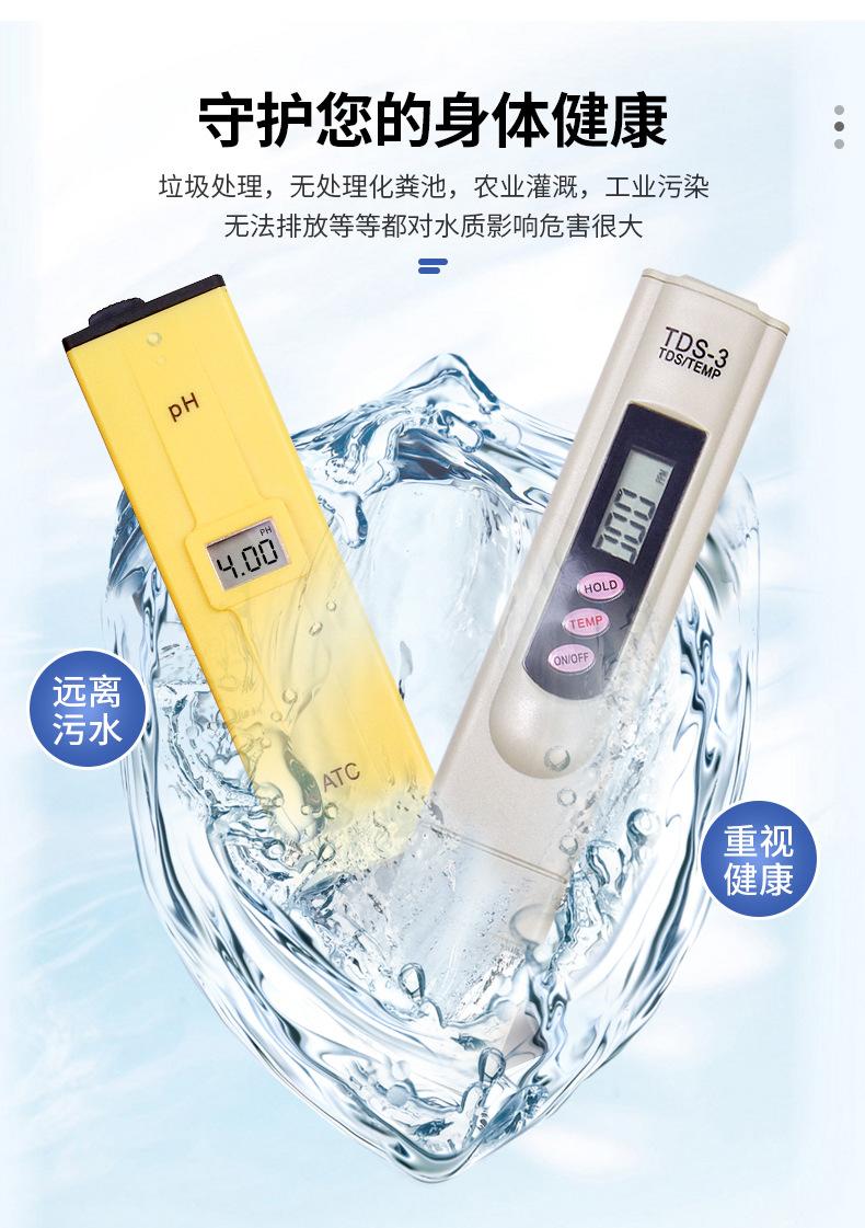 Juego de bolígrafos para prueba de calidad del agua, suministro de comercio exterior, analizador de TDS dedicado transfronterizo, medidor de pH de pantalla pequeña de precisión 0,1