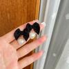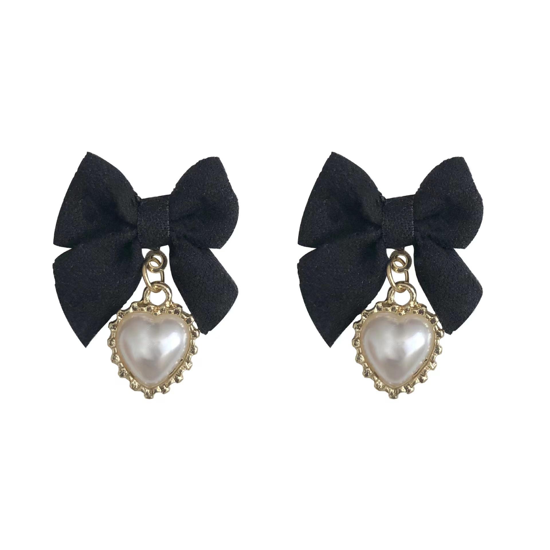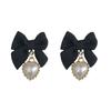 Pendientes de plata S925 con forma de aguja y lazo de terciopelo negro retro, elegantes y sencillos, con perlas y amor para mujer.