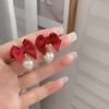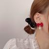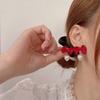 S925 Silver Needle Black Cloth Bow Earrings, S925 Silver Needle Red Cloth Bow Earrings, Black Padded Ear Clip,...
