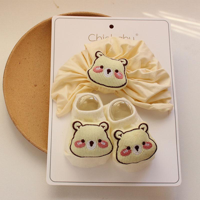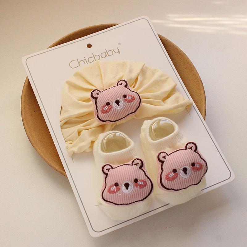 50 Milky White pink brown thread bear hat + socks, 119 Brown Beige brown line bear hat + socks, 50 Milky White...