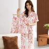 Pijama nuevo transfronterizo floral de seda de hielo para mujer, conjunto de tres piezas de manga corta para verano, fino, dulce, para el hogar, venta al por mayor