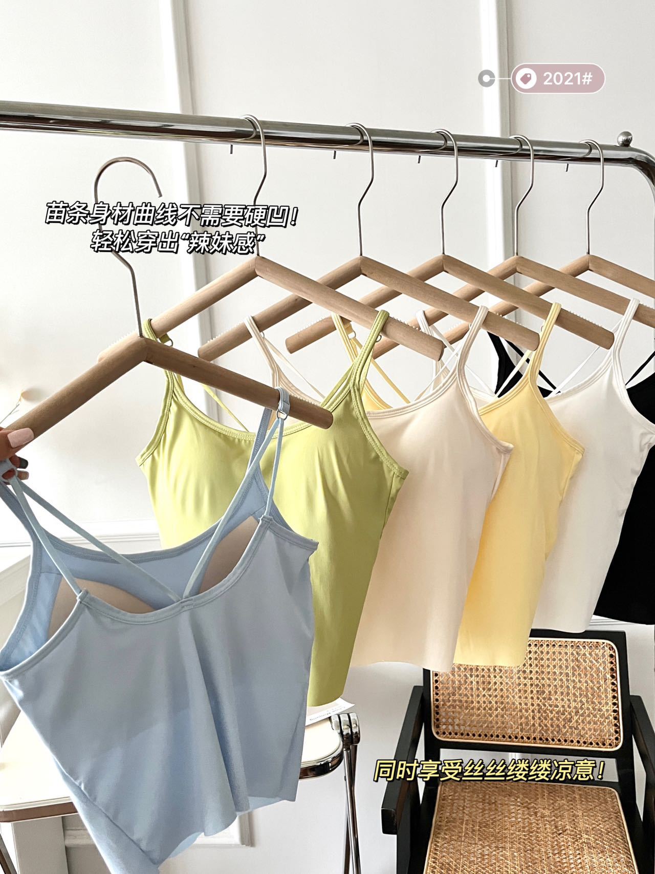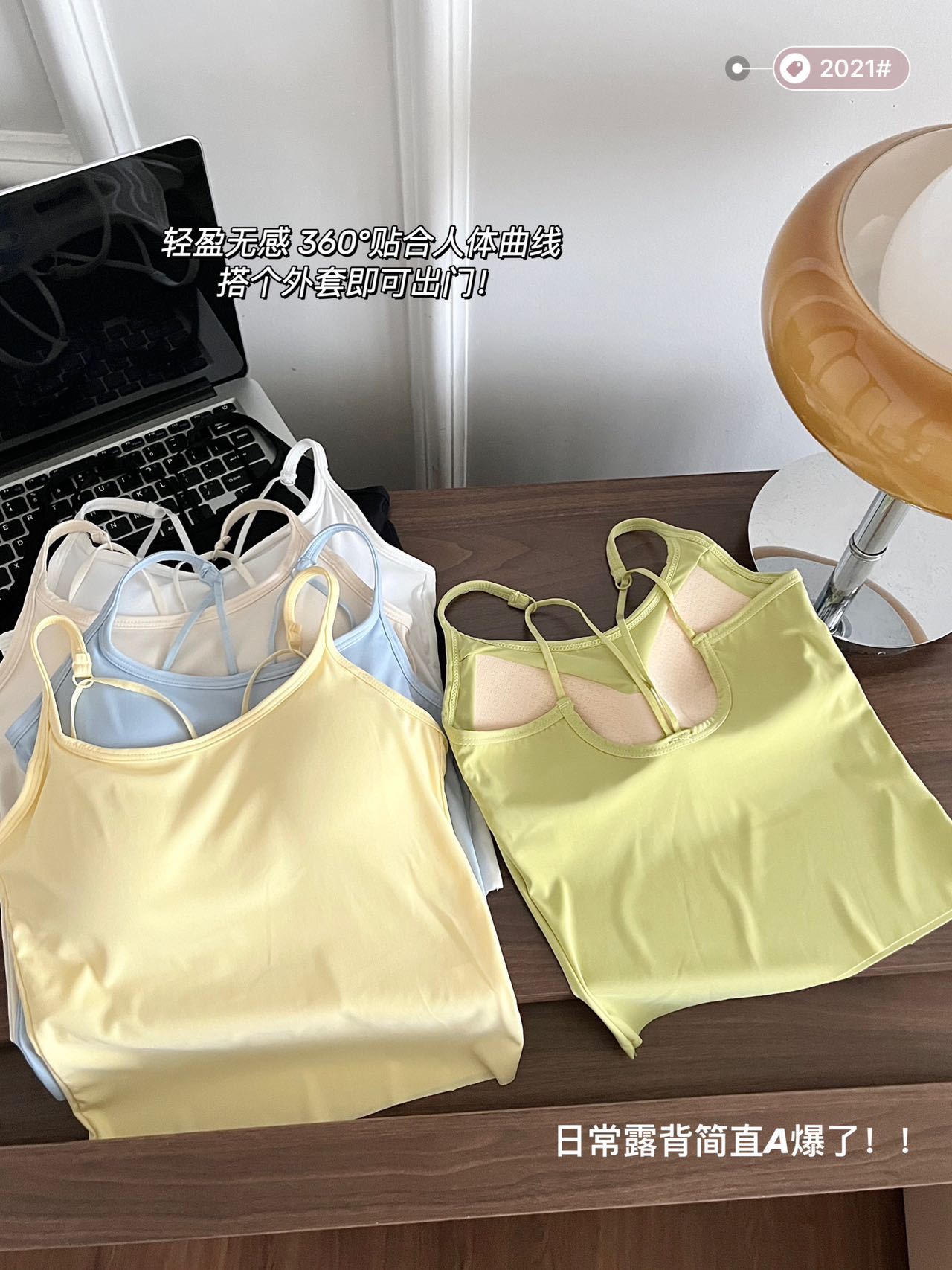 Compra Nueva camiseta de verano con espalda hueca para mujer, con almohadilla interior para el pecho, estilo Spice Girl, para uso exterior, camisola ajustada. al por mayor en Joom.pro