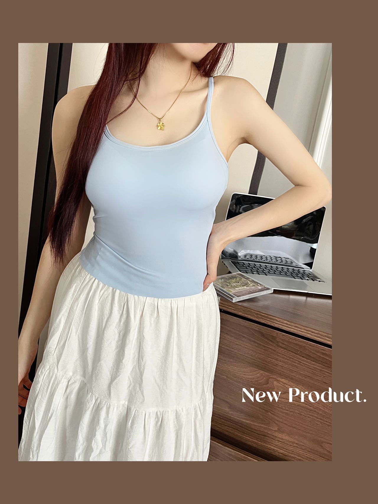 Nueva camiseta de verano con espalda hueca para mujer, con almohadilla interior para el pecho, estilo Spice Girl, para uso exterior, camisola ajustada.
