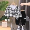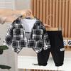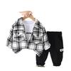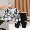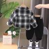 Camisa para niño, traje de otoño 2024, nuevo bebé, estilo occidental, para niños, primavera y otoño, informal, a cuadros, manga larga, tres piezas, de moda