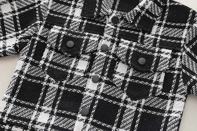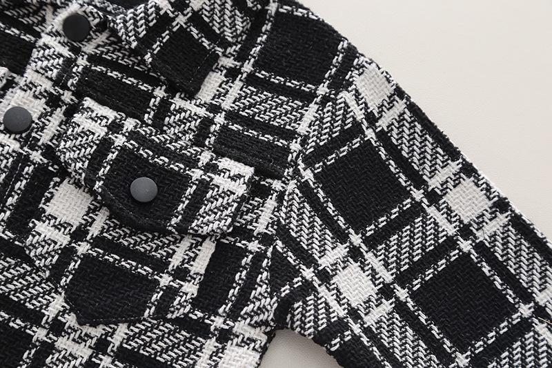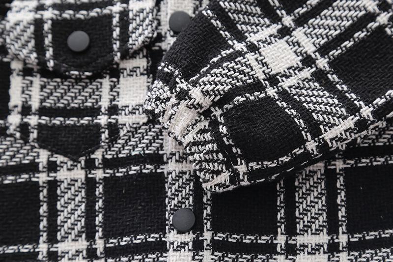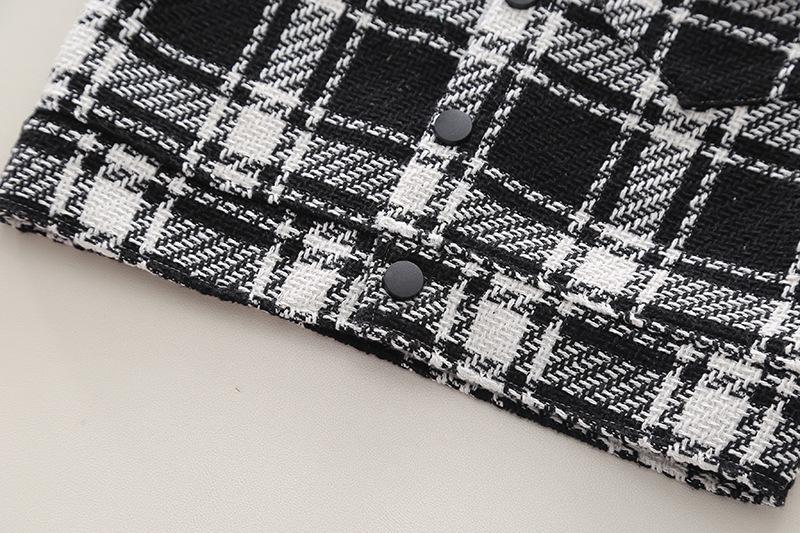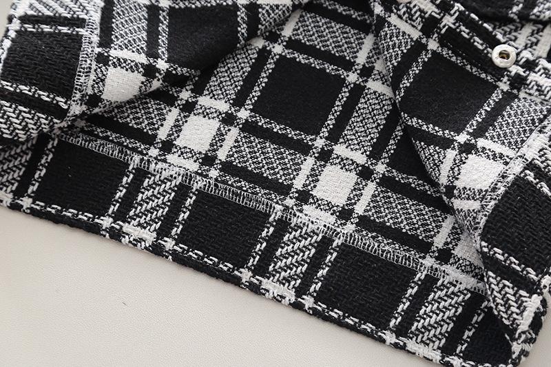 Black Double Pocket Plaid Long Sleeve Three-Piece Set, White Double Pocket Plaid Long Sleeve Three-Piece Set
