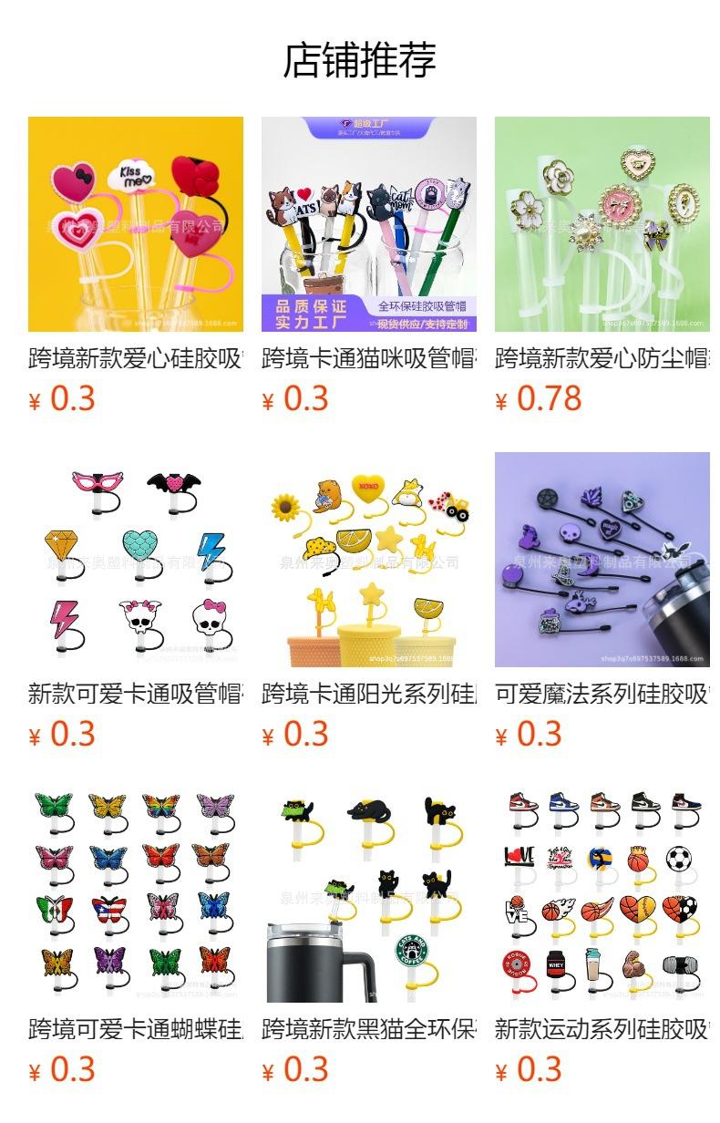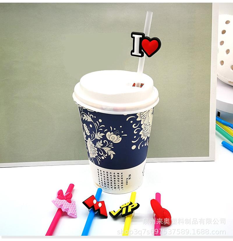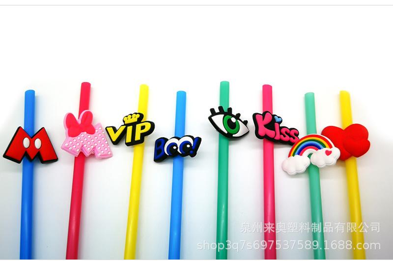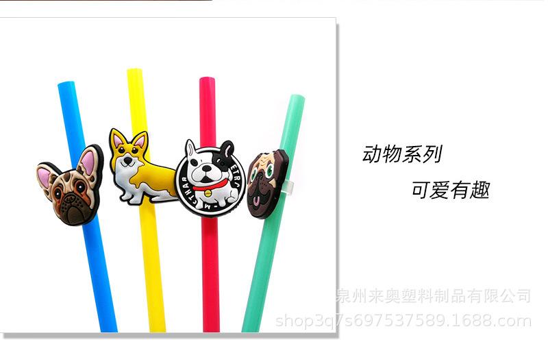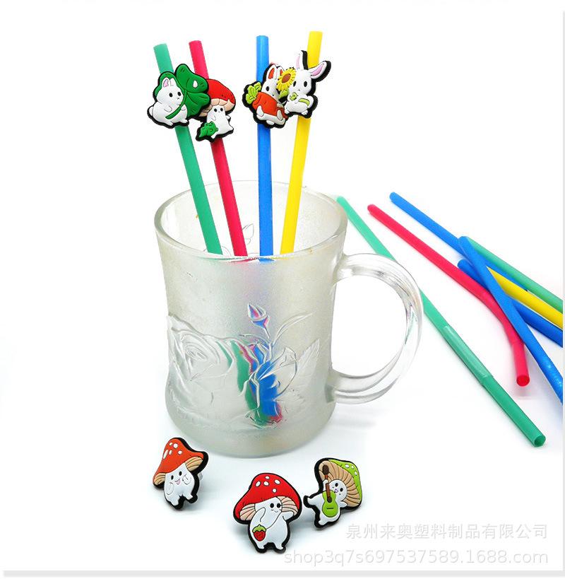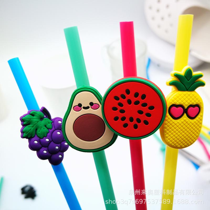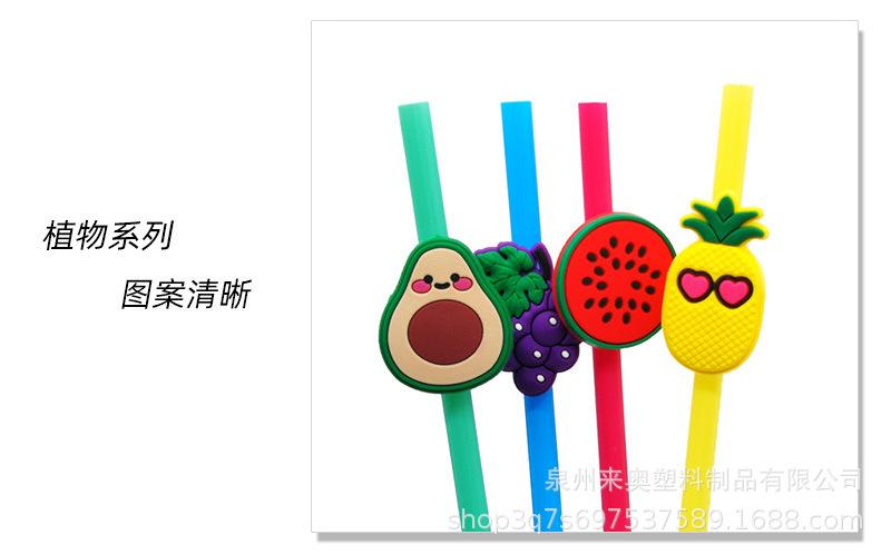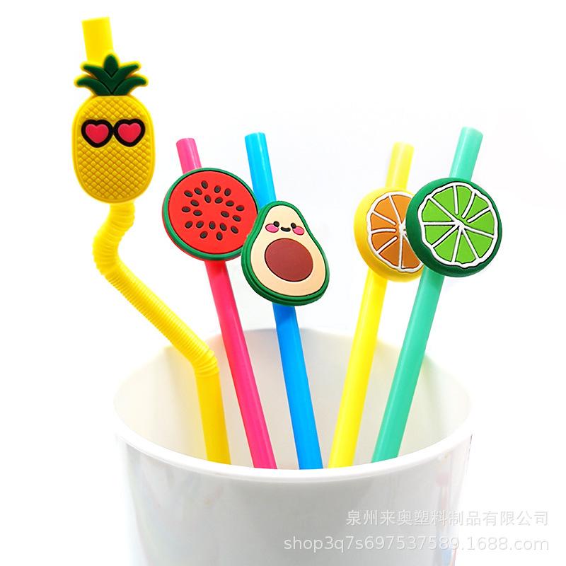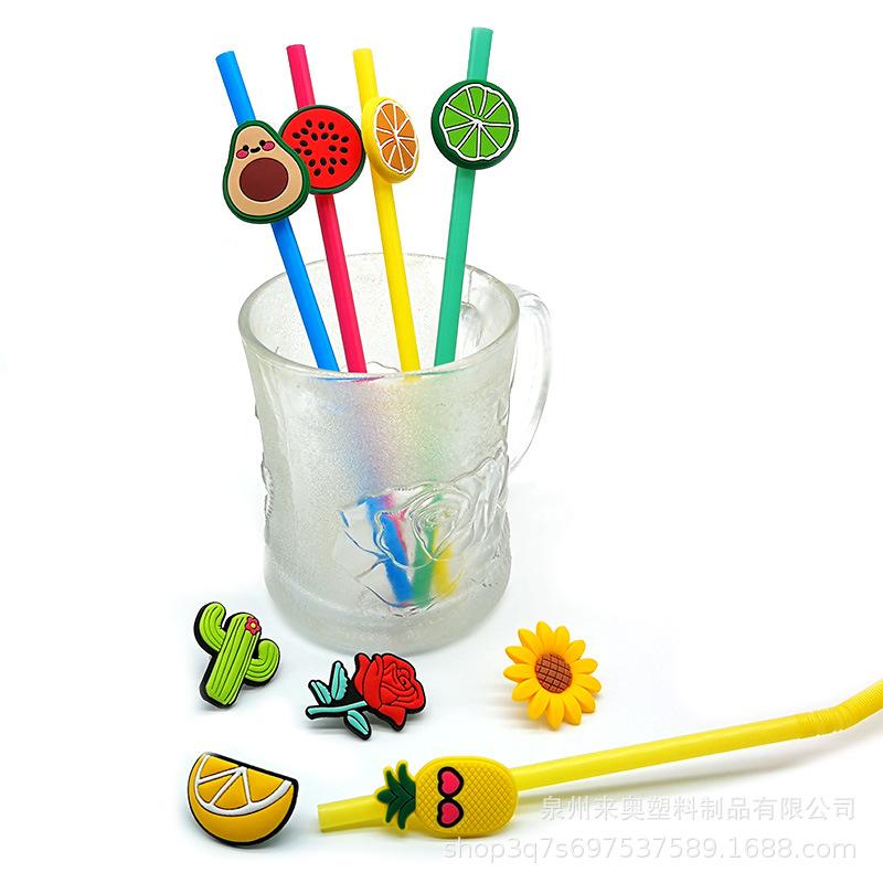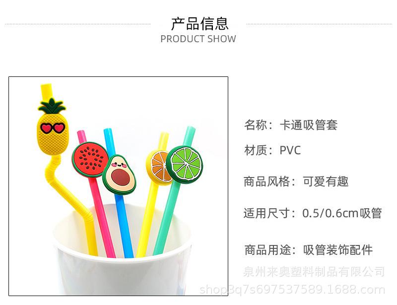 Tapa Antipolvo de Dibujos Animados Creativa Transfronteriza Tapa para Popote Accesorios Hecho a Mano Lindo Fruta Pvc Pegamento Suave Juego de Popote Clip Tubo para Beber