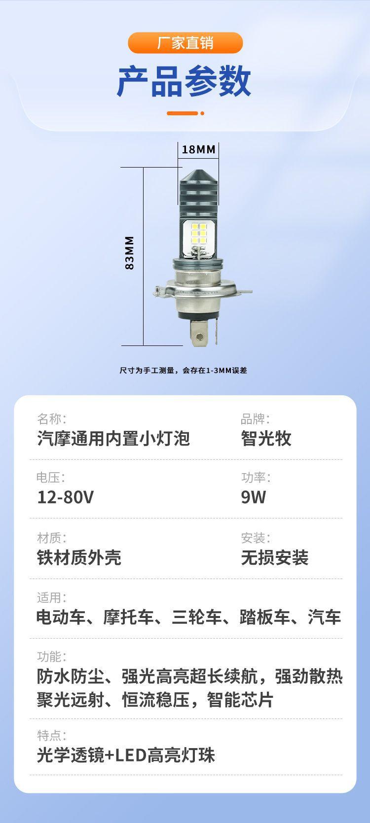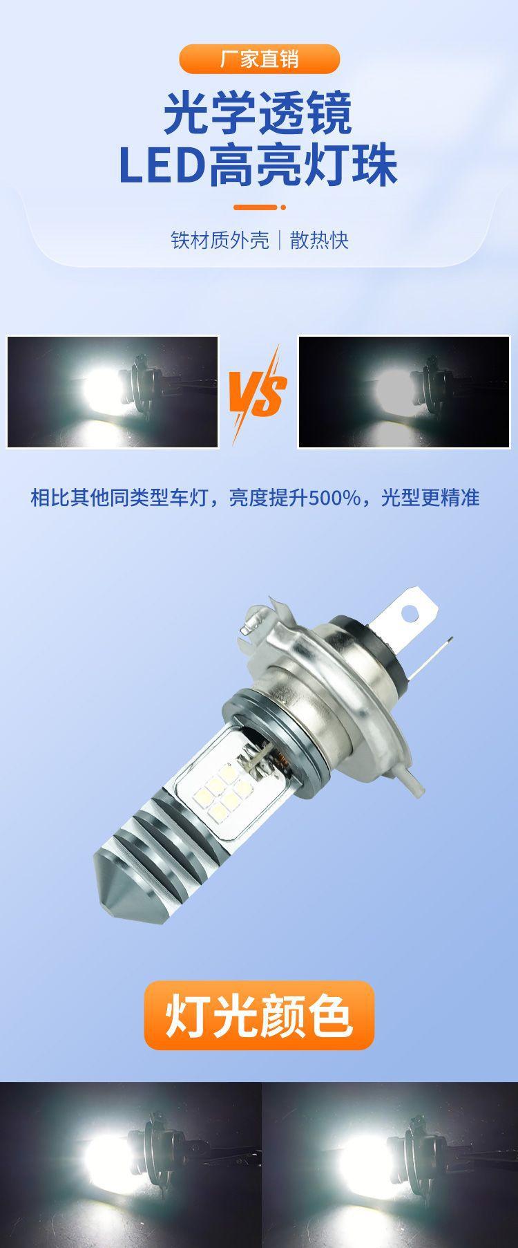 Bombilla pequeña universal para motocicleta, luz de doble cara con diseño de espina de pescado, H4, para coche eléctrico, luz LED para motocicleta y coche