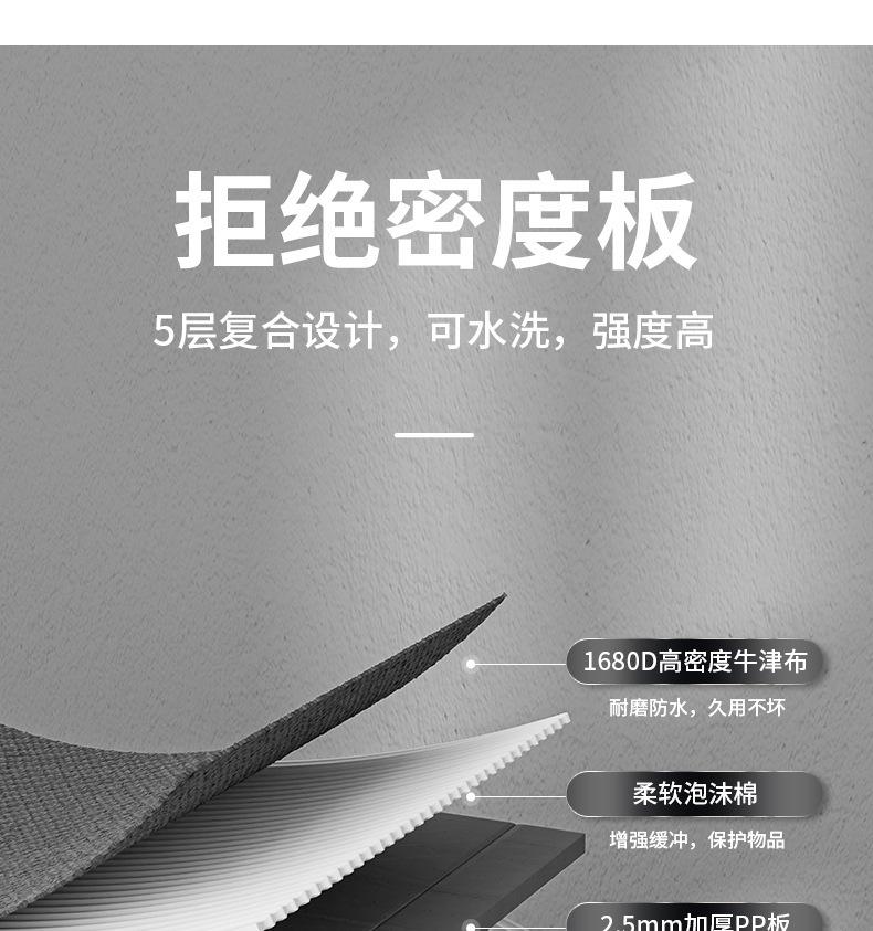 [Material del producto]: Tela Oxford 1680D, partición de PP
