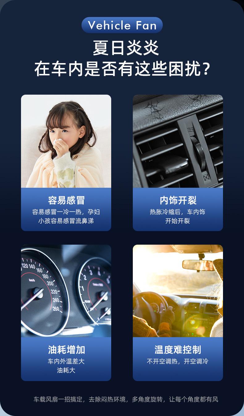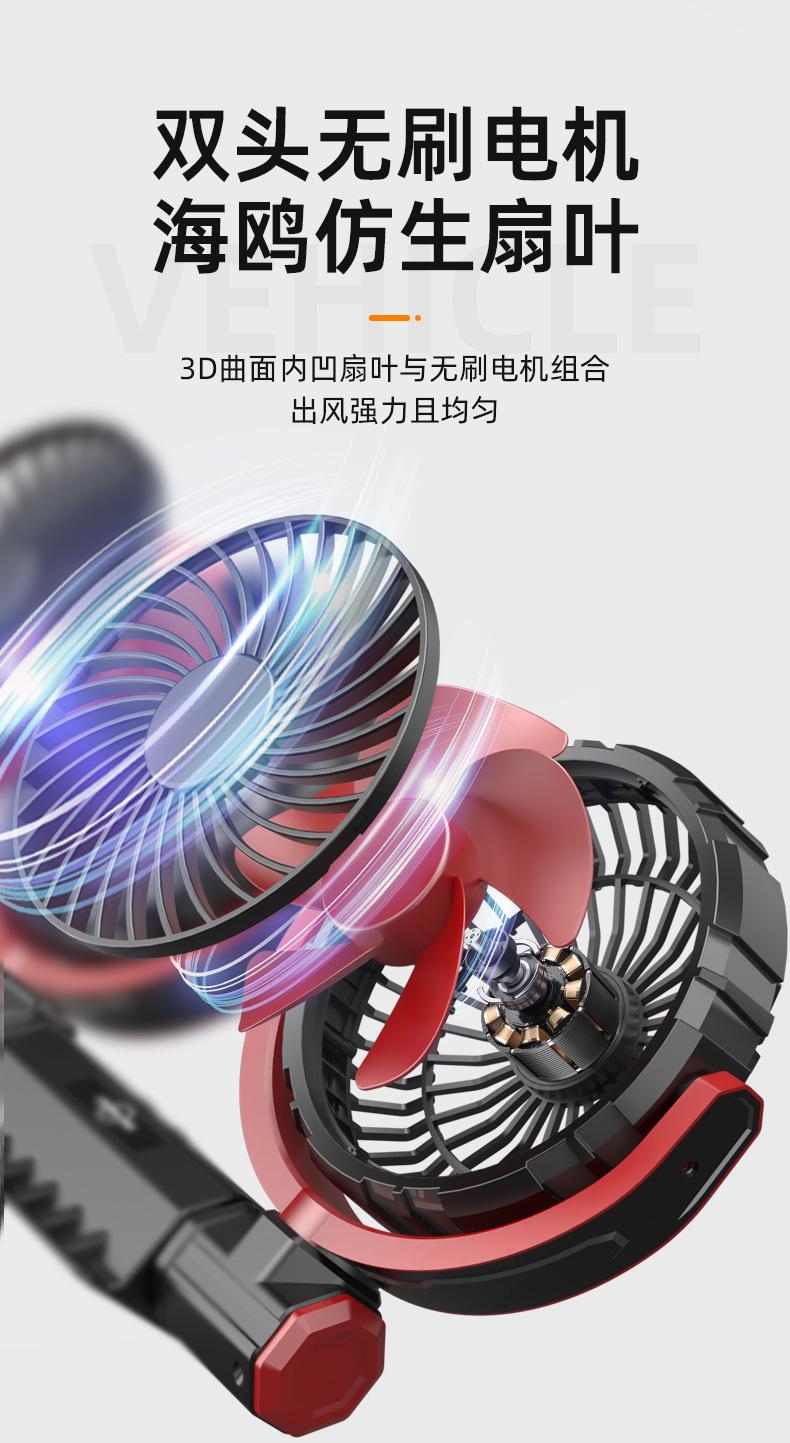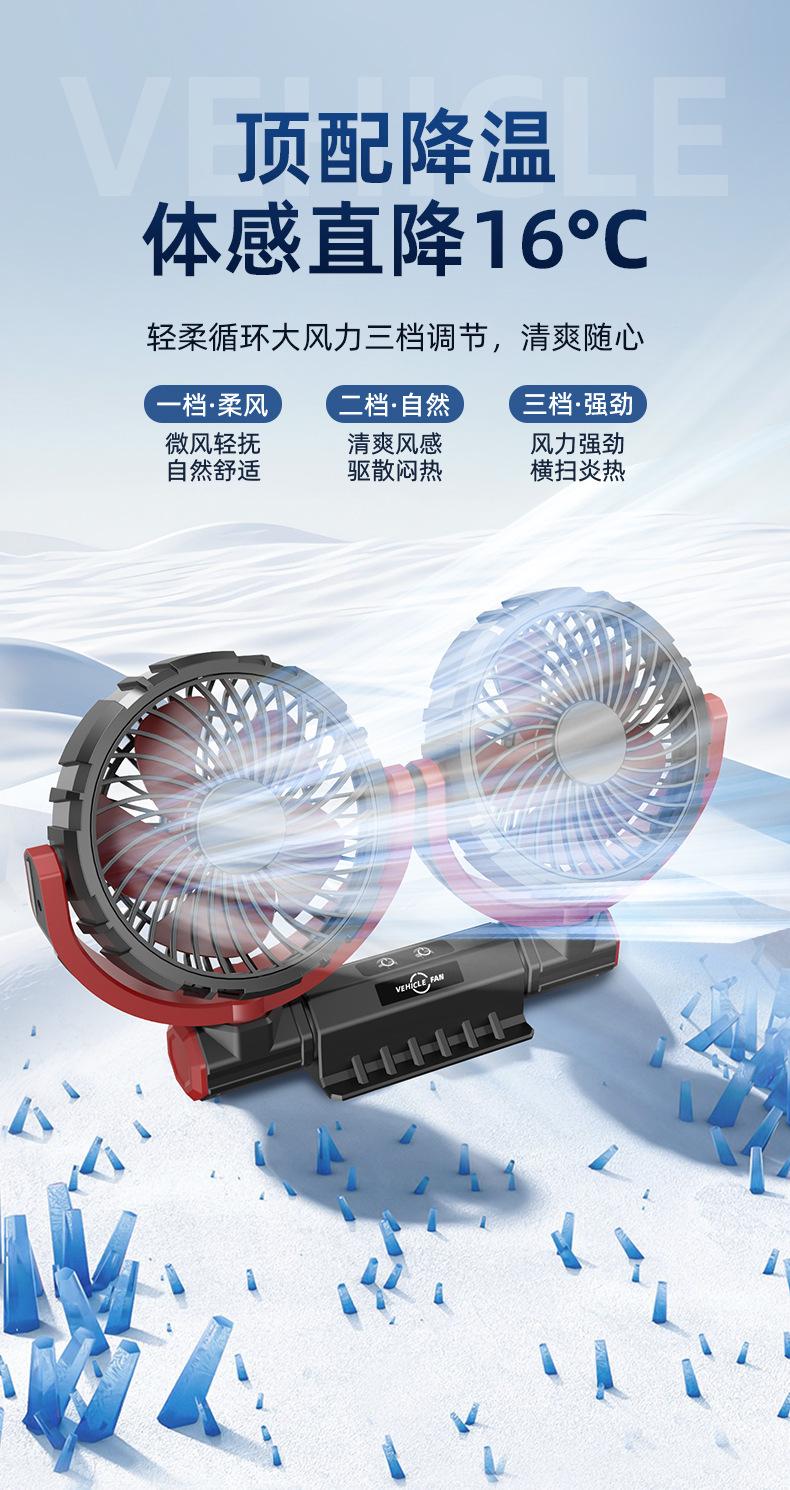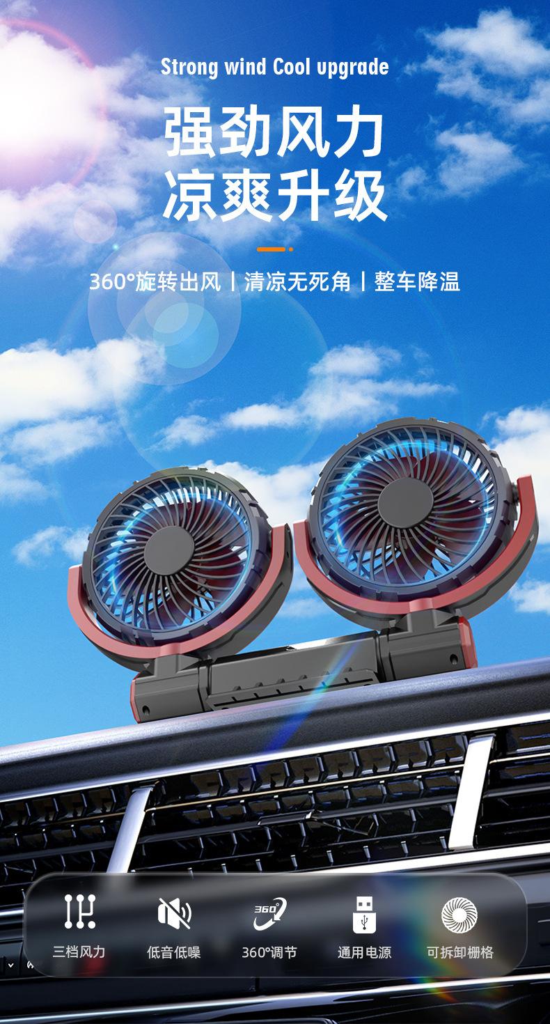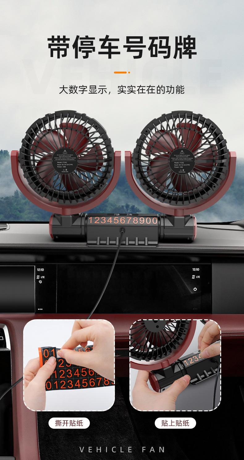 Nombre del producto: Ventilador de coche multifuncional de doble cabezal con función de señal de estacionamiento