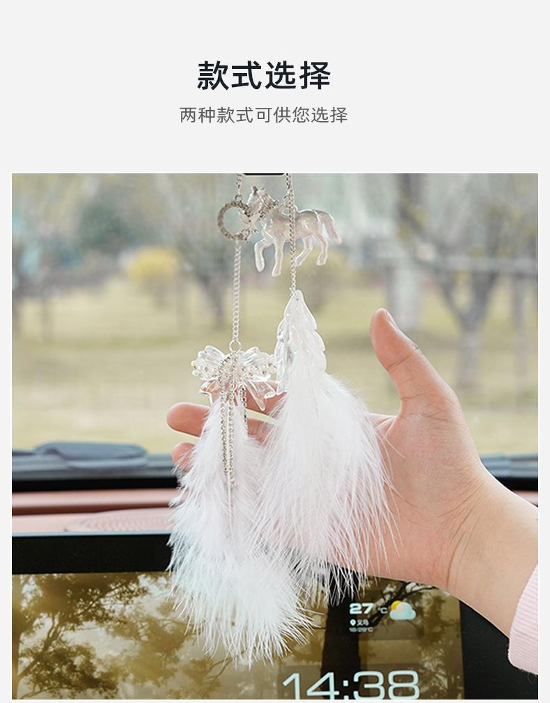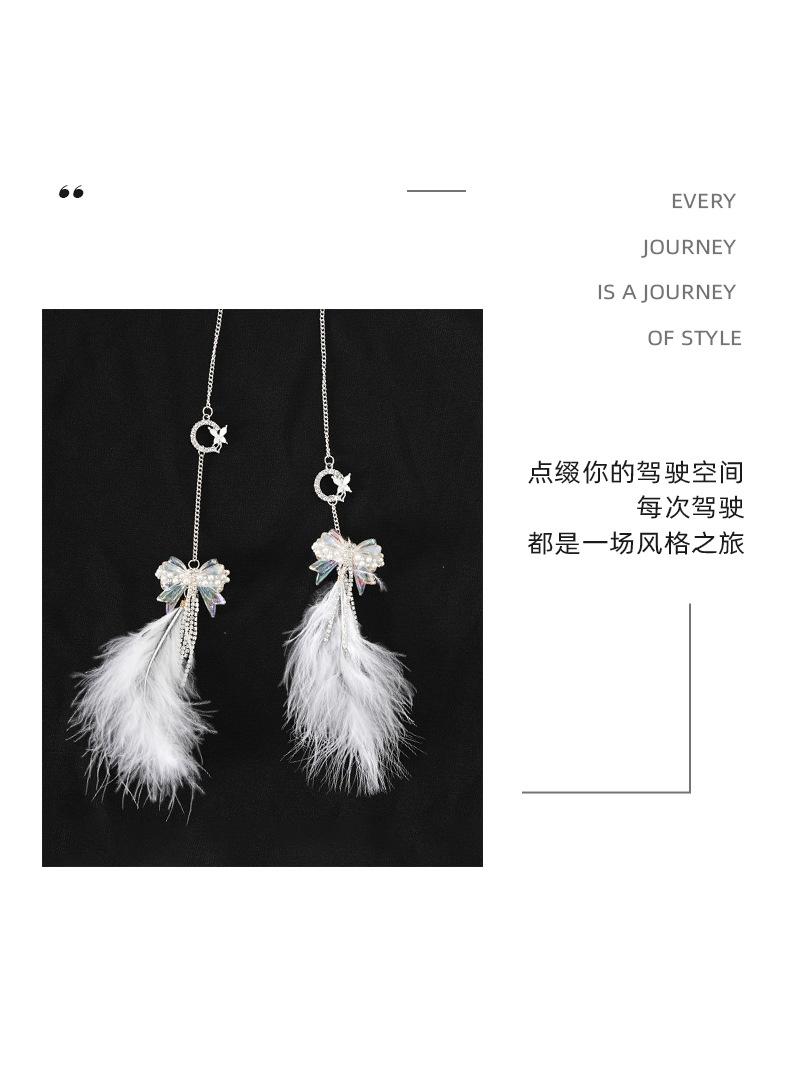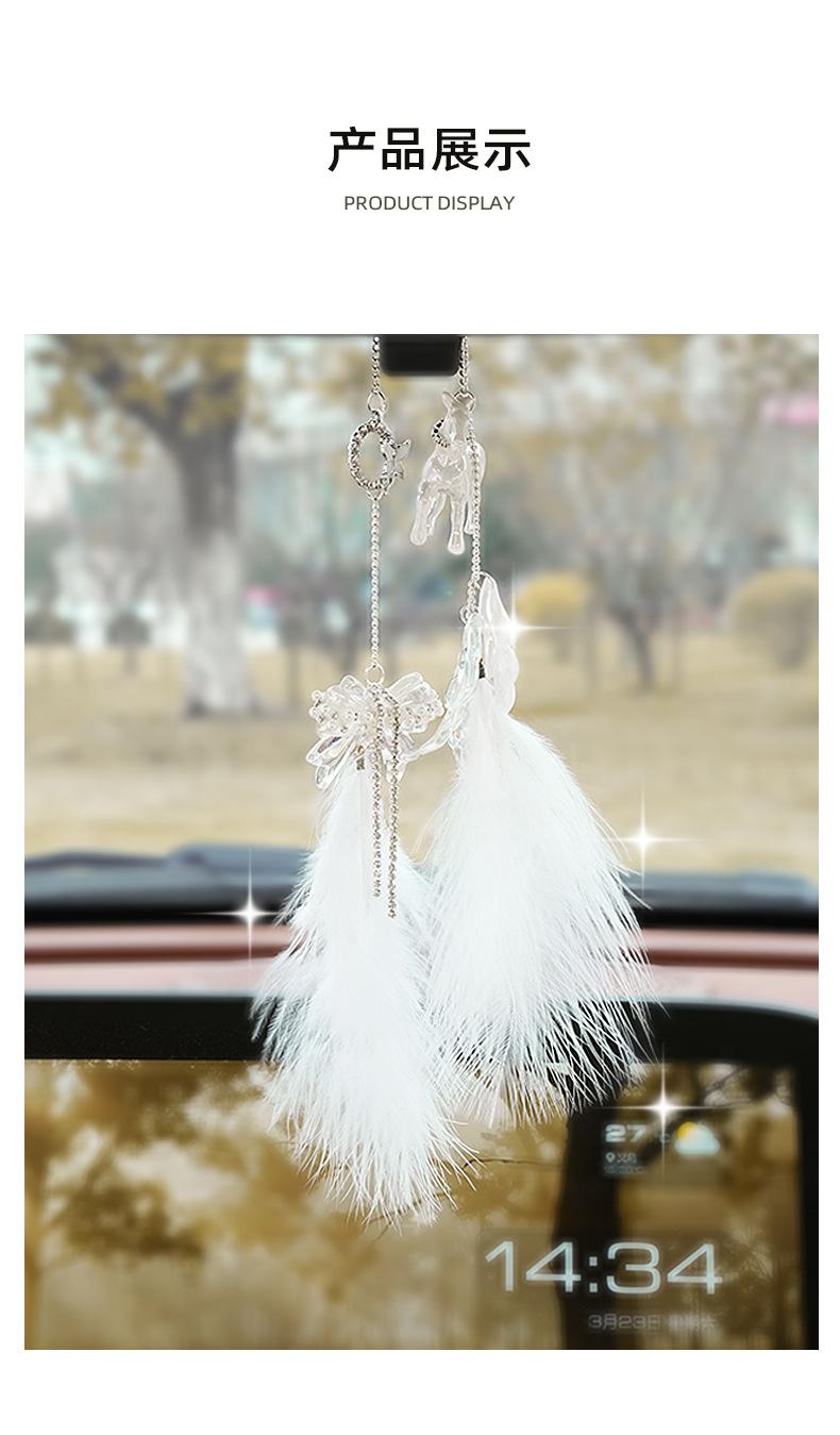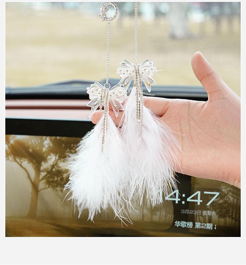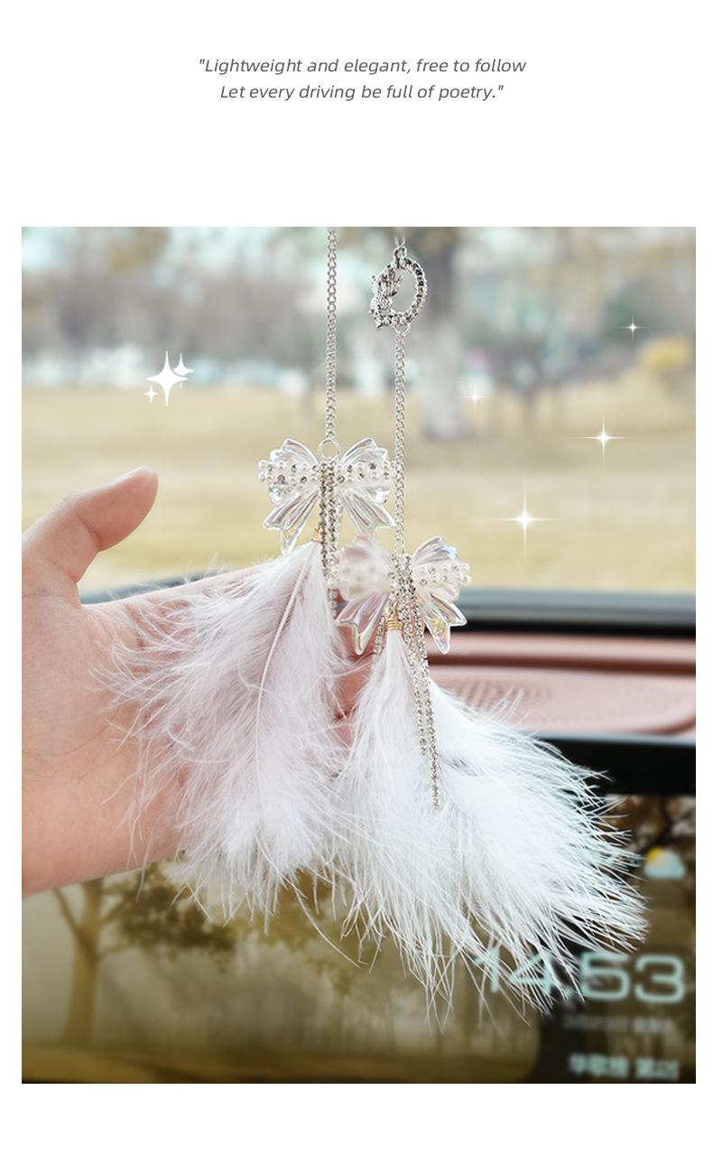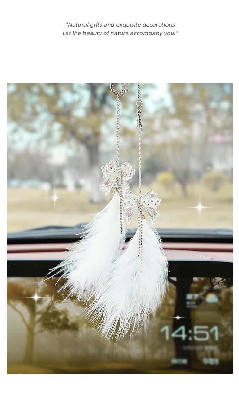 Colgante de coche de alta gama, creativo y de moda, con lazo de plumas, para espejo retrovisor de coche, decorativo para mujer
