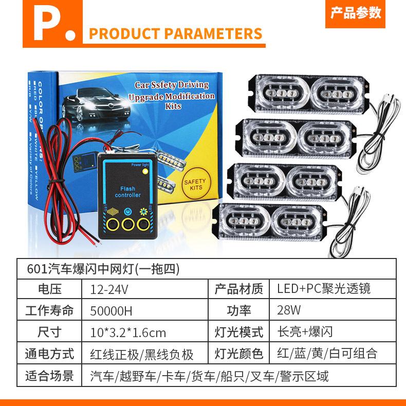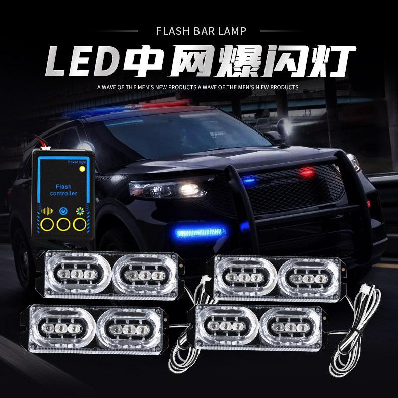 Adecuado para luces de rejilla central de coche luces LED intermitentes uno-en-cuatro-en-dos luces estroboscópicas de advertencia modificadas anticolisión para motocicleta
