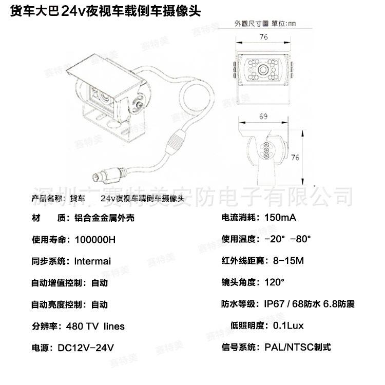 Montado en el vehículoAHD67 a prueba de agua y golpesCámara de alta definición de un millón de dólares: Se adopta el procesamiento de imágenes18Luz infrarroja de bajo consumo.CONDUJO,Anti-vaho,DefenderResistencia a los terremotosamplio voltaje.El diseño resolvió con éxito el problema de la calidad de imagen inestable causada por las cámaras comunes en los automóviles, y el efecto se volvía borroso después de un período de tiempo;