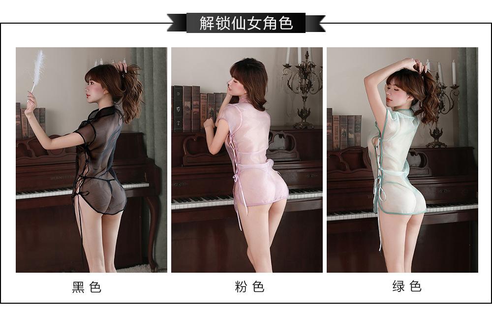 Uniforme sexy para mujer, transparente, clásico, con cuello levantado, cheongsam sexy, retro, bordado, pijama sexy dividido