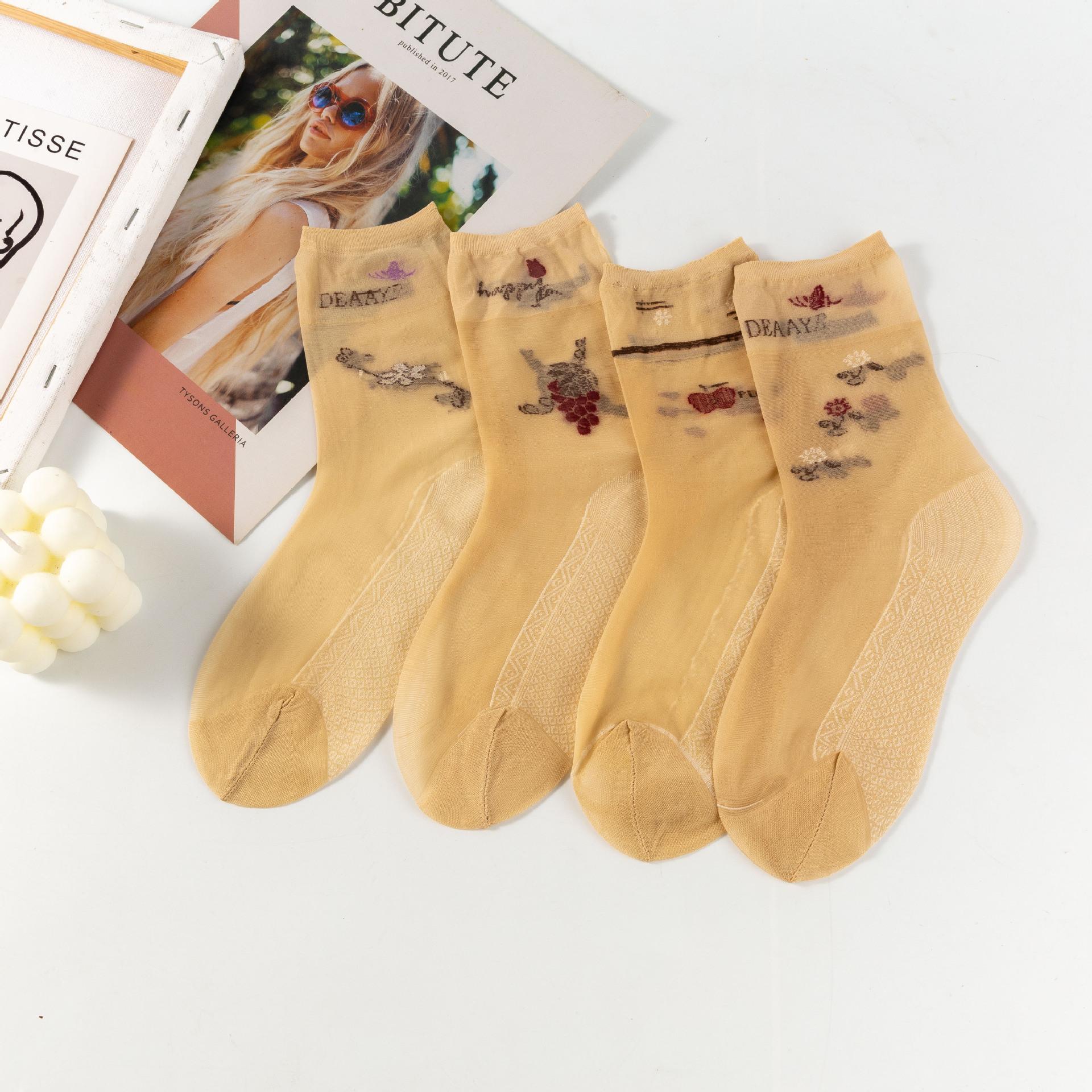 Medias cortas de mujer de primavera y verano con tacón curvo, finas, con núcleo de jacquard, de seda, hasta la mitad de la pantorrilla, transpirables, venta al por mayor de fábrica